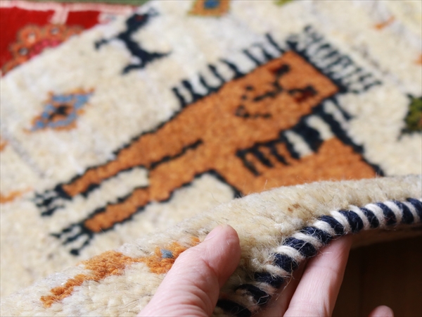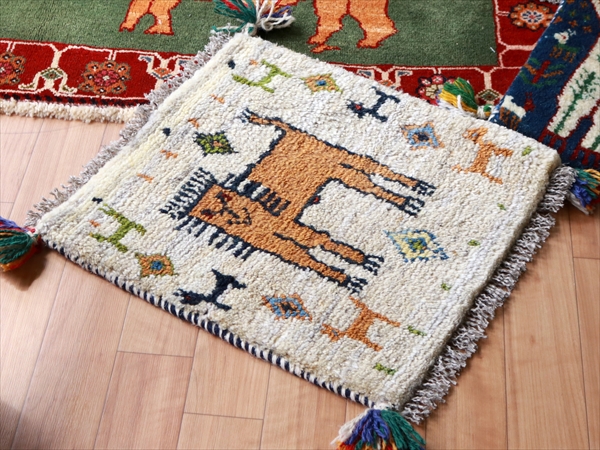 ギャッベ ライオンラグ ナチュラル43×40cm デフォルメされたライオン