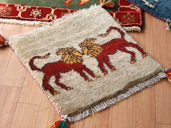 - ギャッベ ライオンラグ ナチュラル42×43cm スタイルのいいライオン