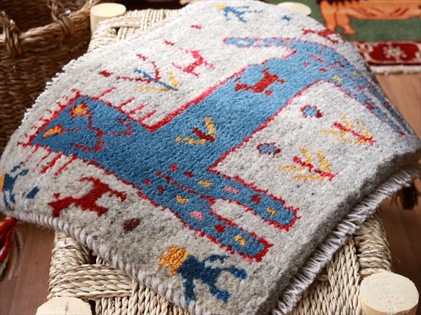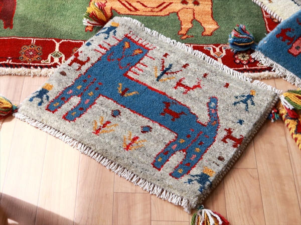 ギャッベ ライオンラグ グレー37×47cm デフォルメされたライオン