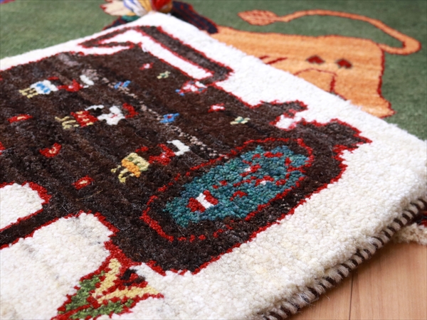 ギャッベ ライオンラグ ナチュラル40×43cm ユニークな人面ライオン