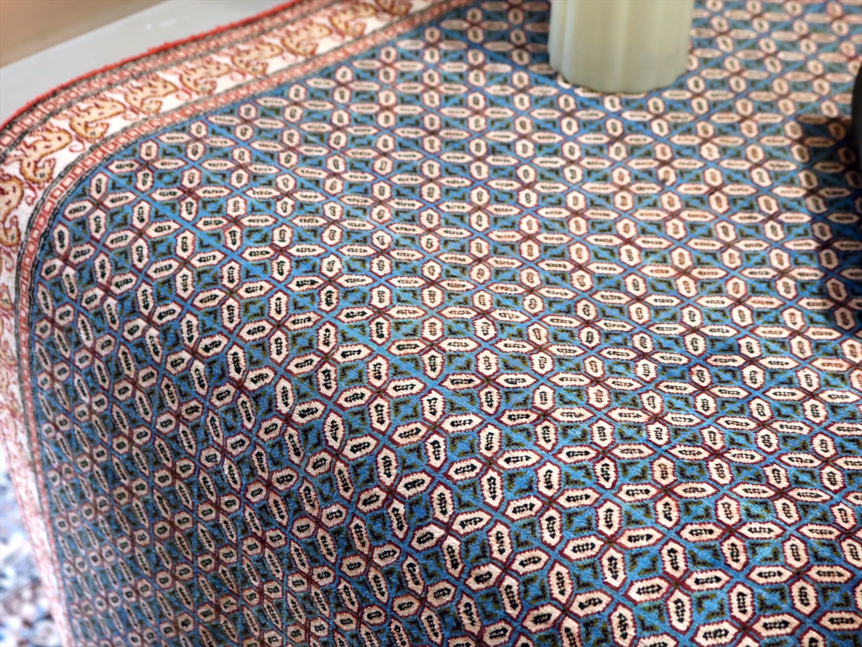 | 10cmに80〜90目ほどの目の詰まった細かな織りで、織り地の表面には光沢があります。織られてから30年以上経過していて、長く絨毯屋さんに保管されていました。 【コム Qom】 絨毯づくりは1930年頃から始まり、1960年代に入り、部分的にシルクを使った絨毯が現れ、やがてオール・シルクの製品が作られるようになりました。新興産地のため、伝統にとらわれない斬新なデザインがあり、宗教的に保守的な土地柄とはかけはなれた華麗な絨毯がつくられています。 |