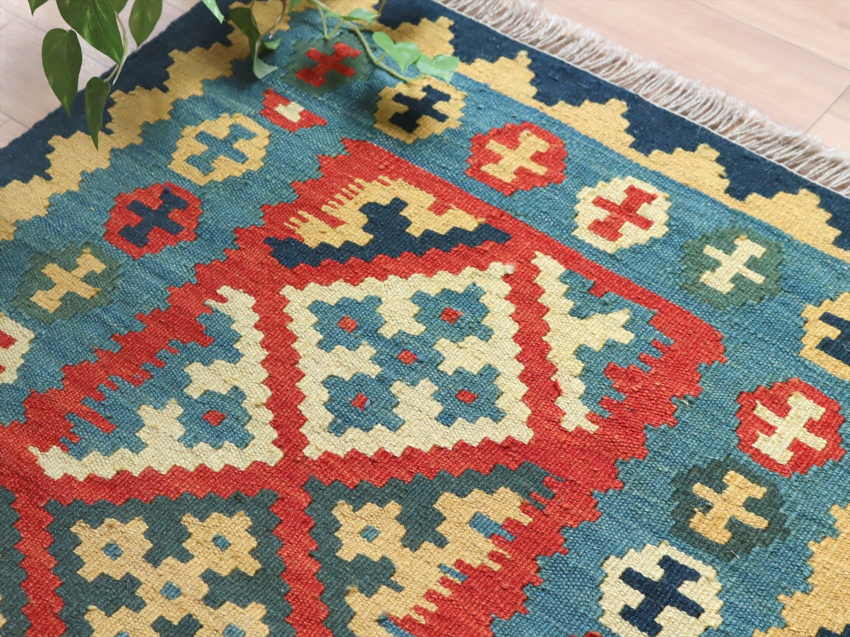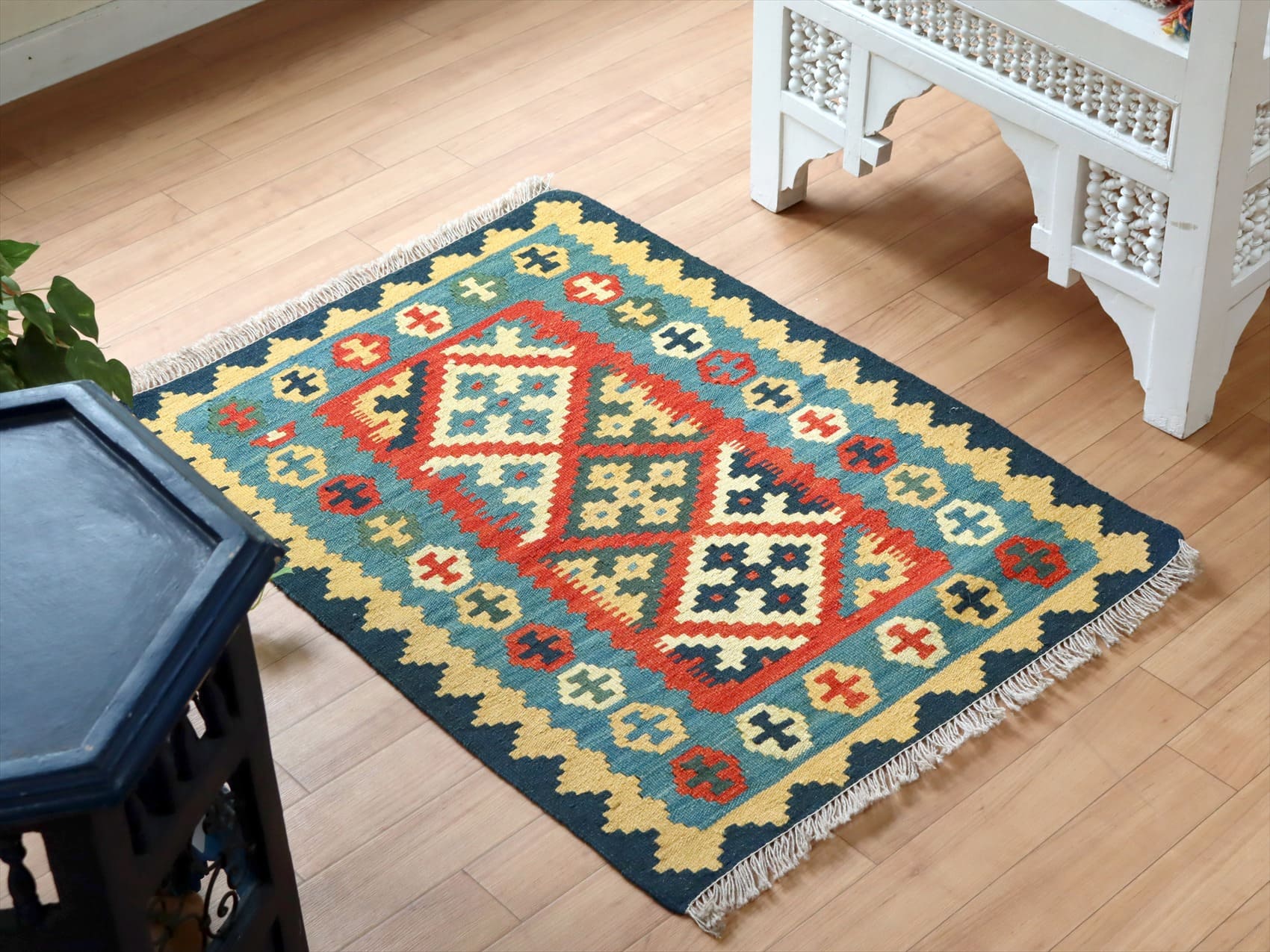 - イラン手織りキリム カシュカイキリム 88×66cm 発色のよいカラフルモチーフ