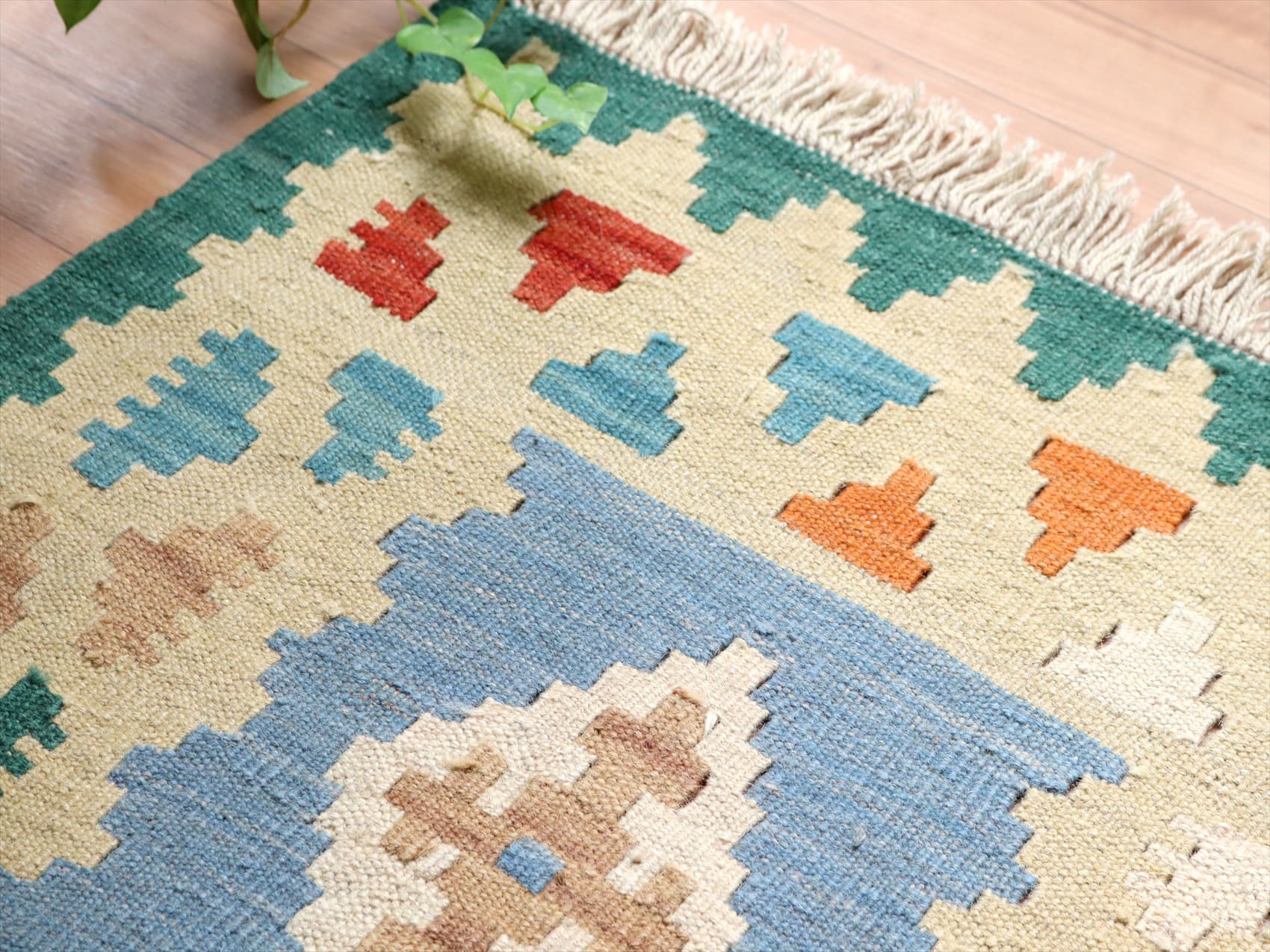 - イラン手織りキリム カシュカイキリム 92×63cm カラフルな幾何学モチーフ