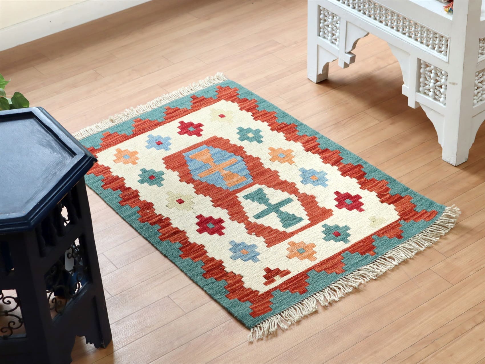 イラン手織りキリム カシュカイキリム 89×61cm カラフルな幾何学モチーフ