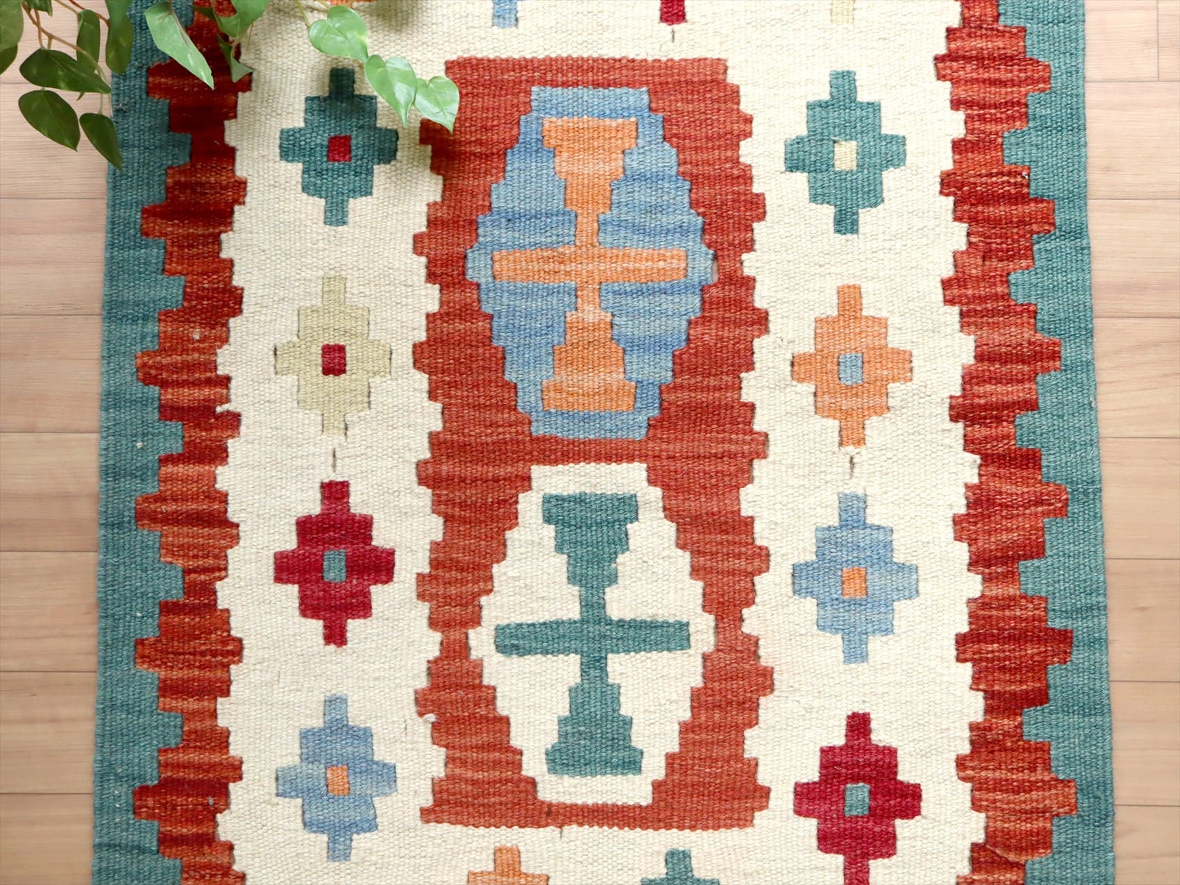 - イラン手織りキリム カシュカイキリム 89×61cm カラフルな幾何学モチーフ