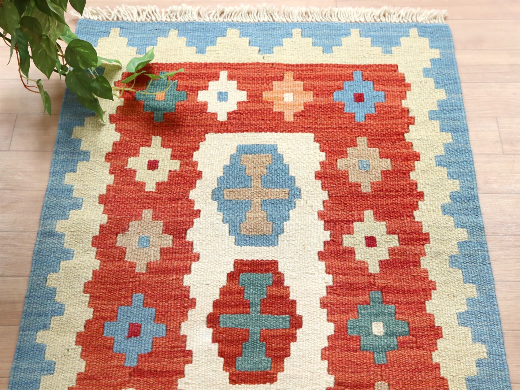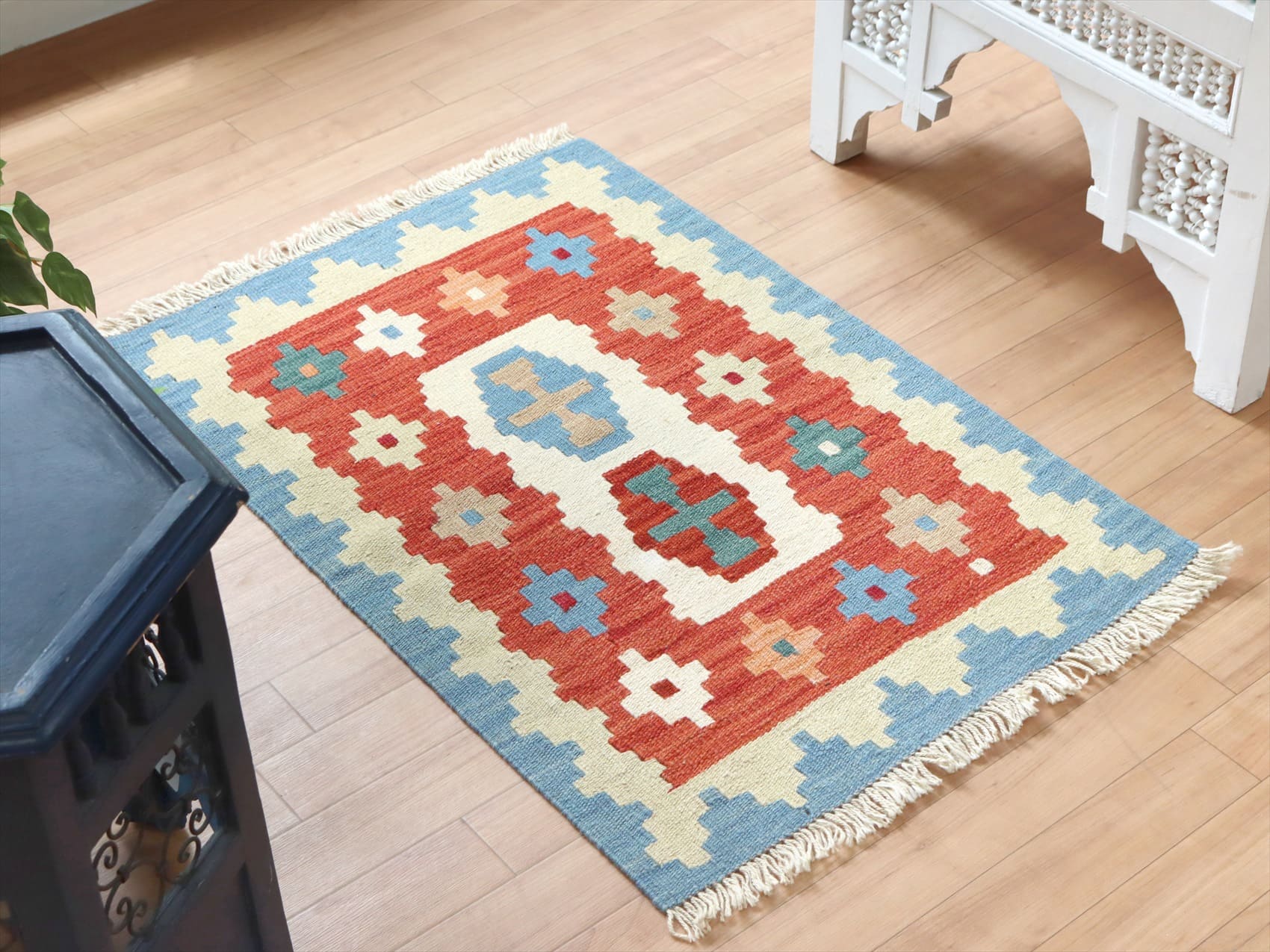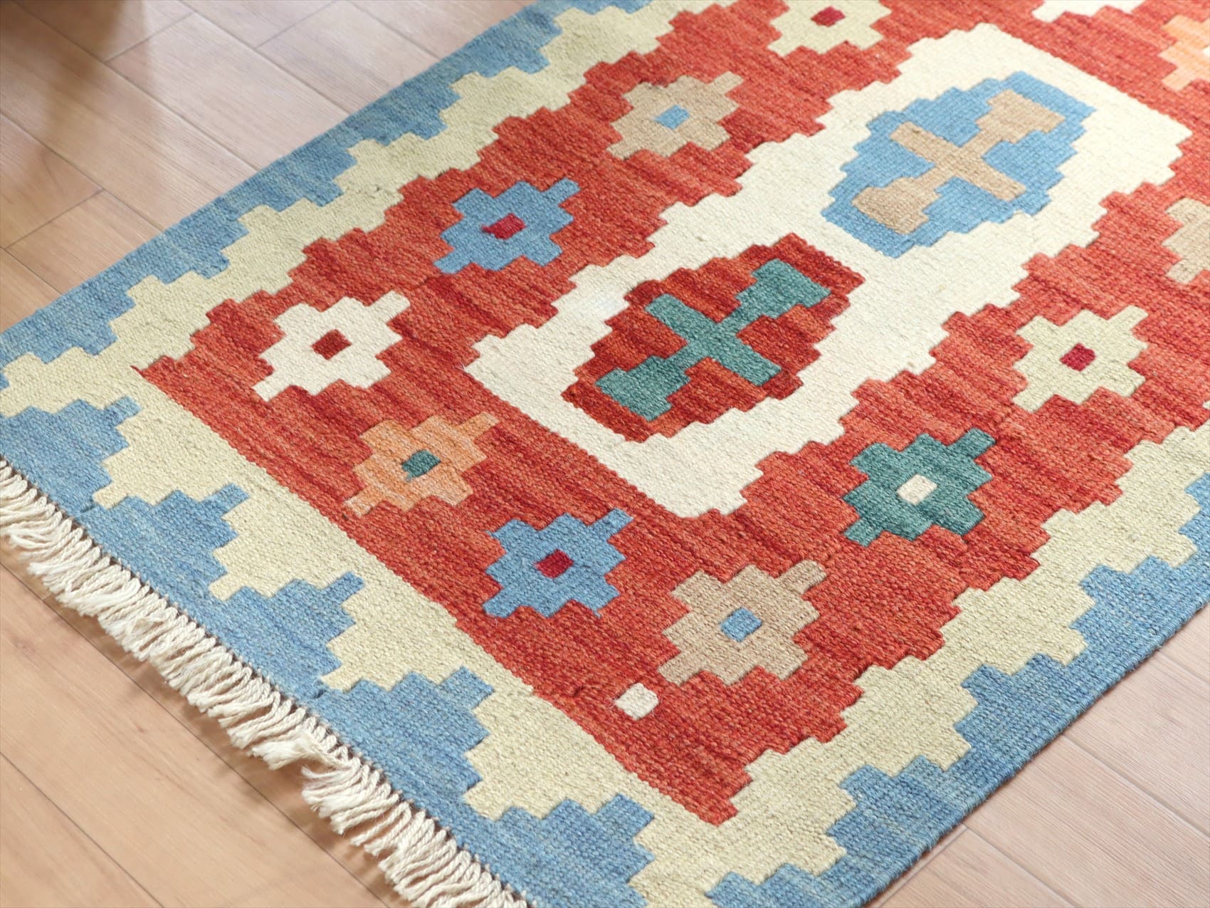 - イラン手織りキリム カシュカイキリム 91×62cm カラフルな幾何学モチーフ