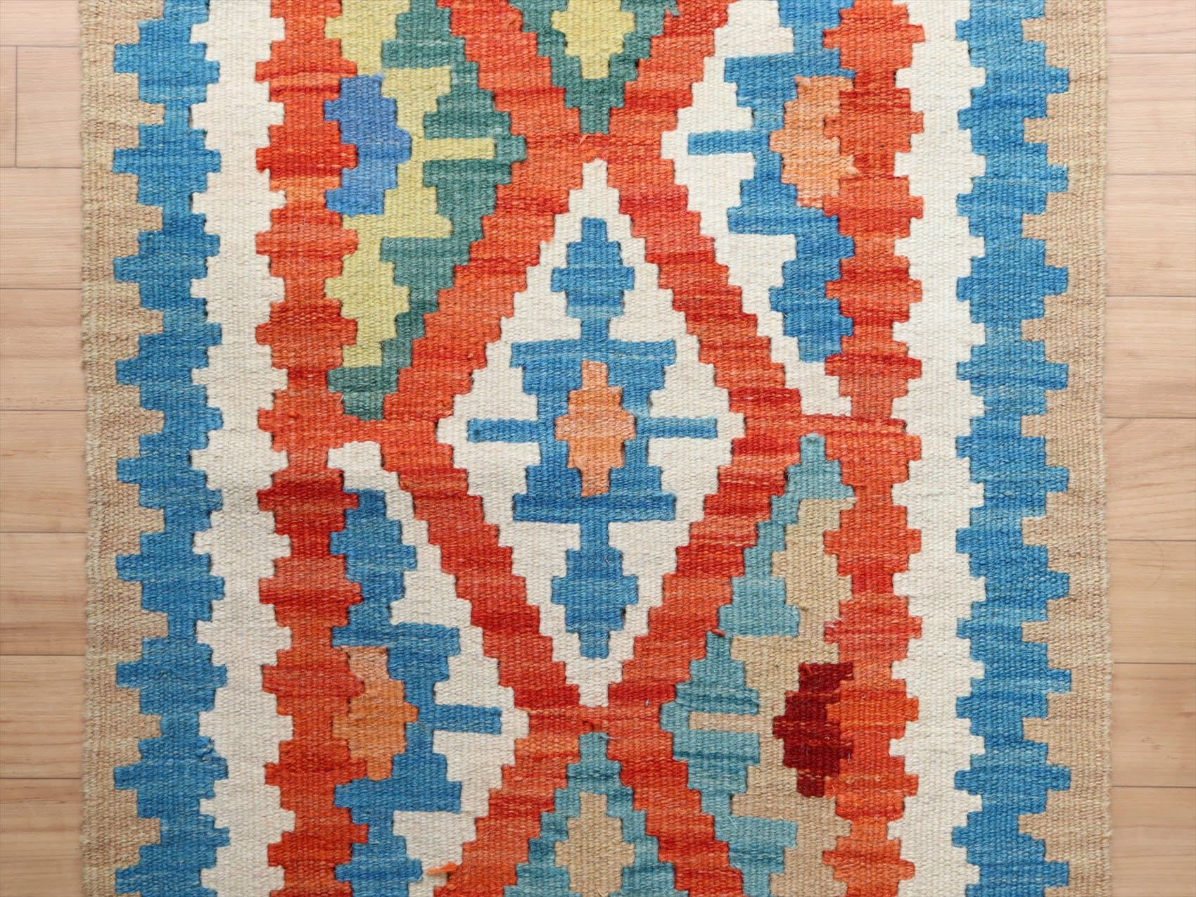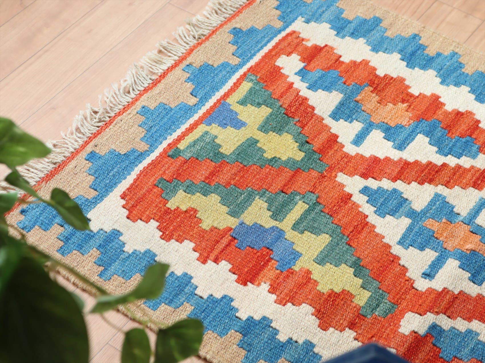 - イラン手織りキリム カシュカイキリム 89×62cm カラフルな幾何学モチーフ