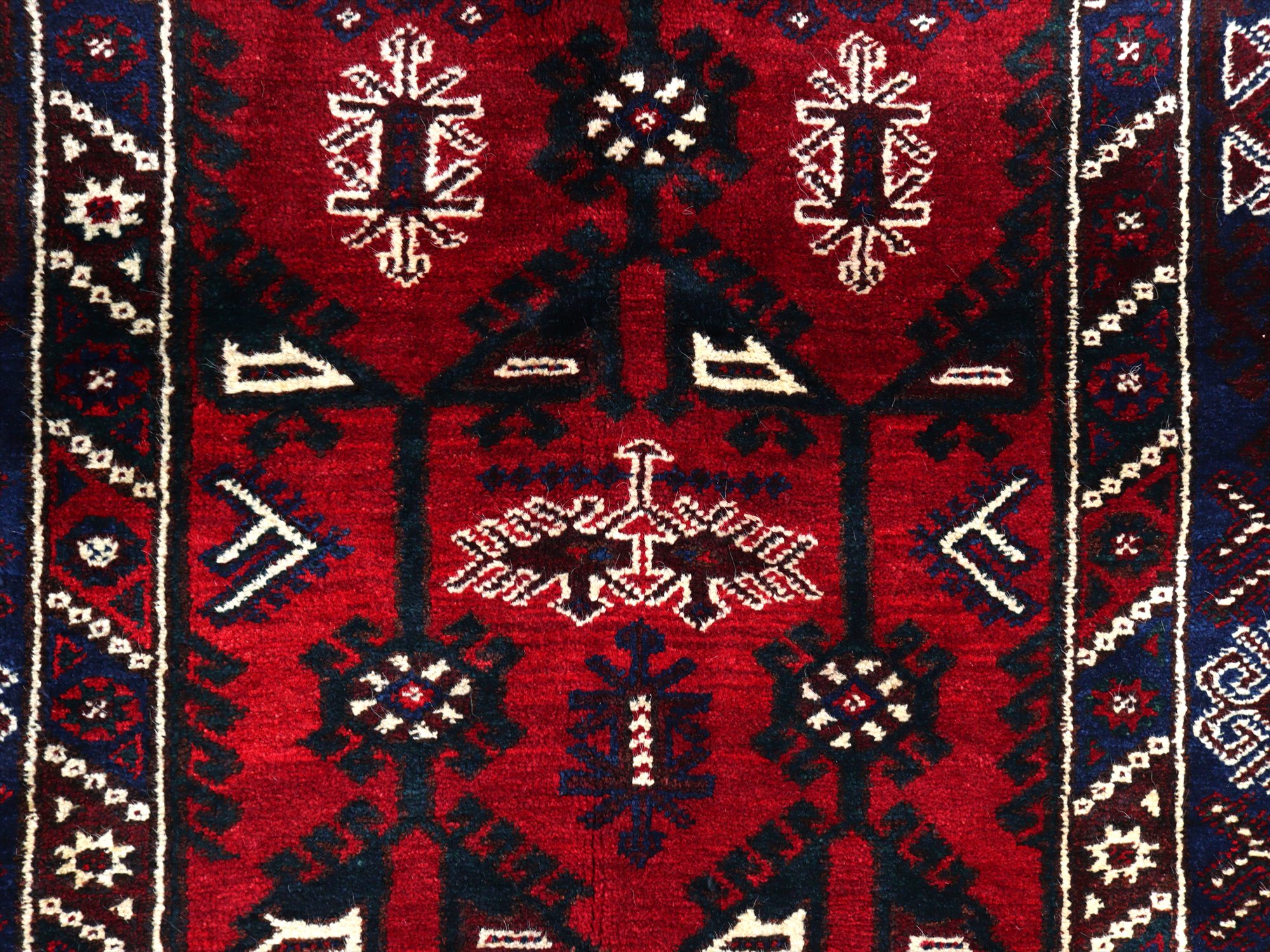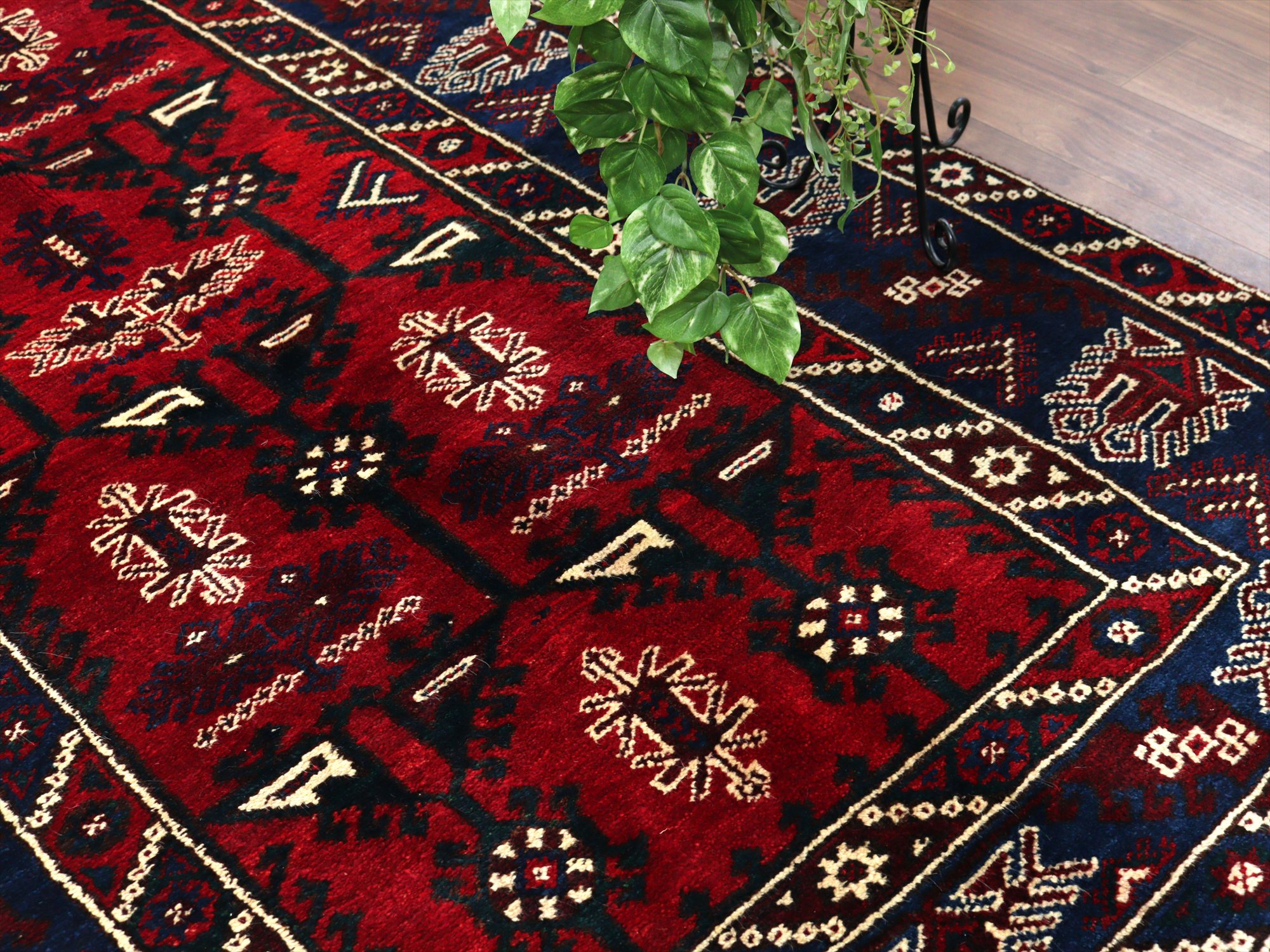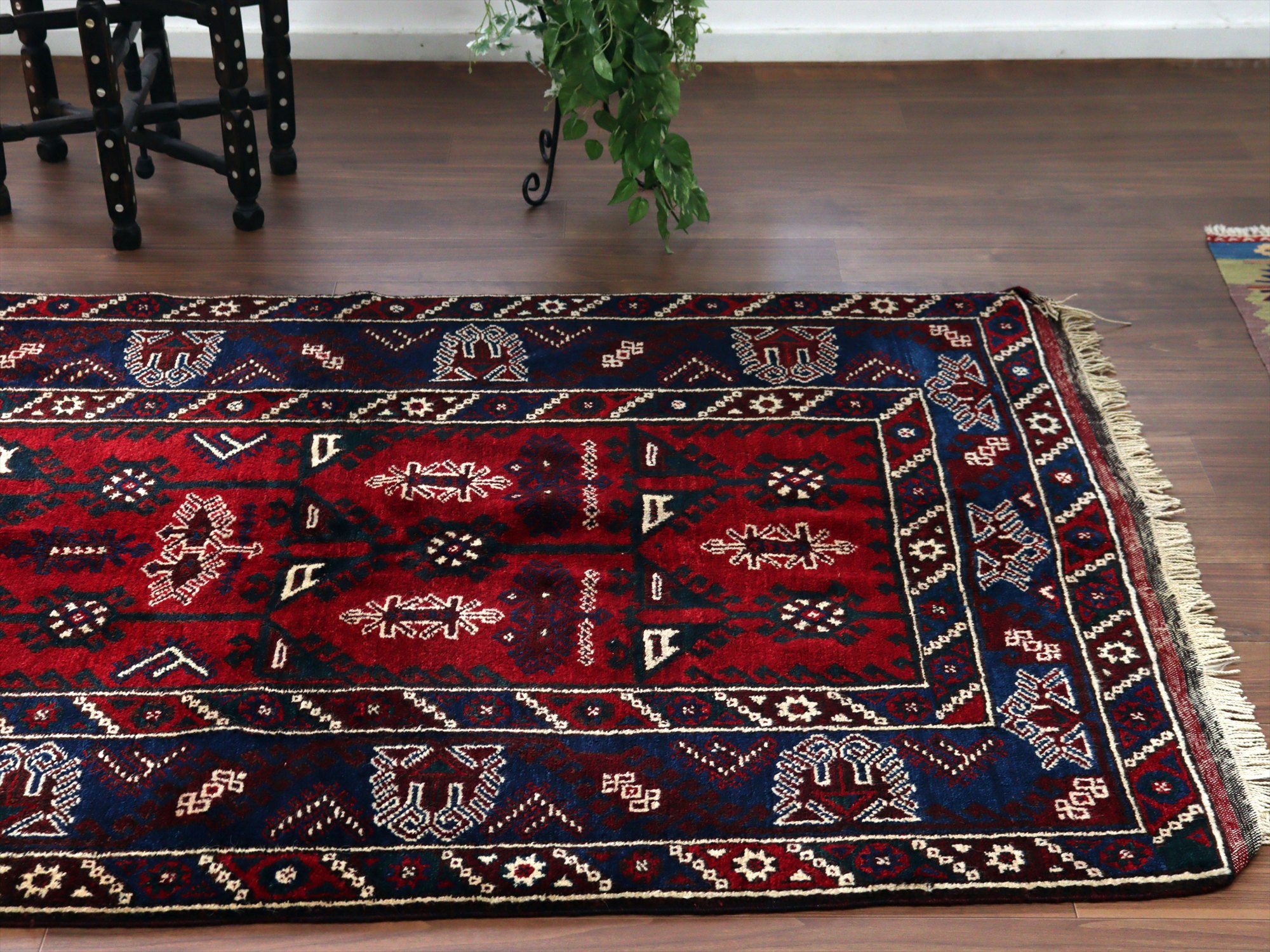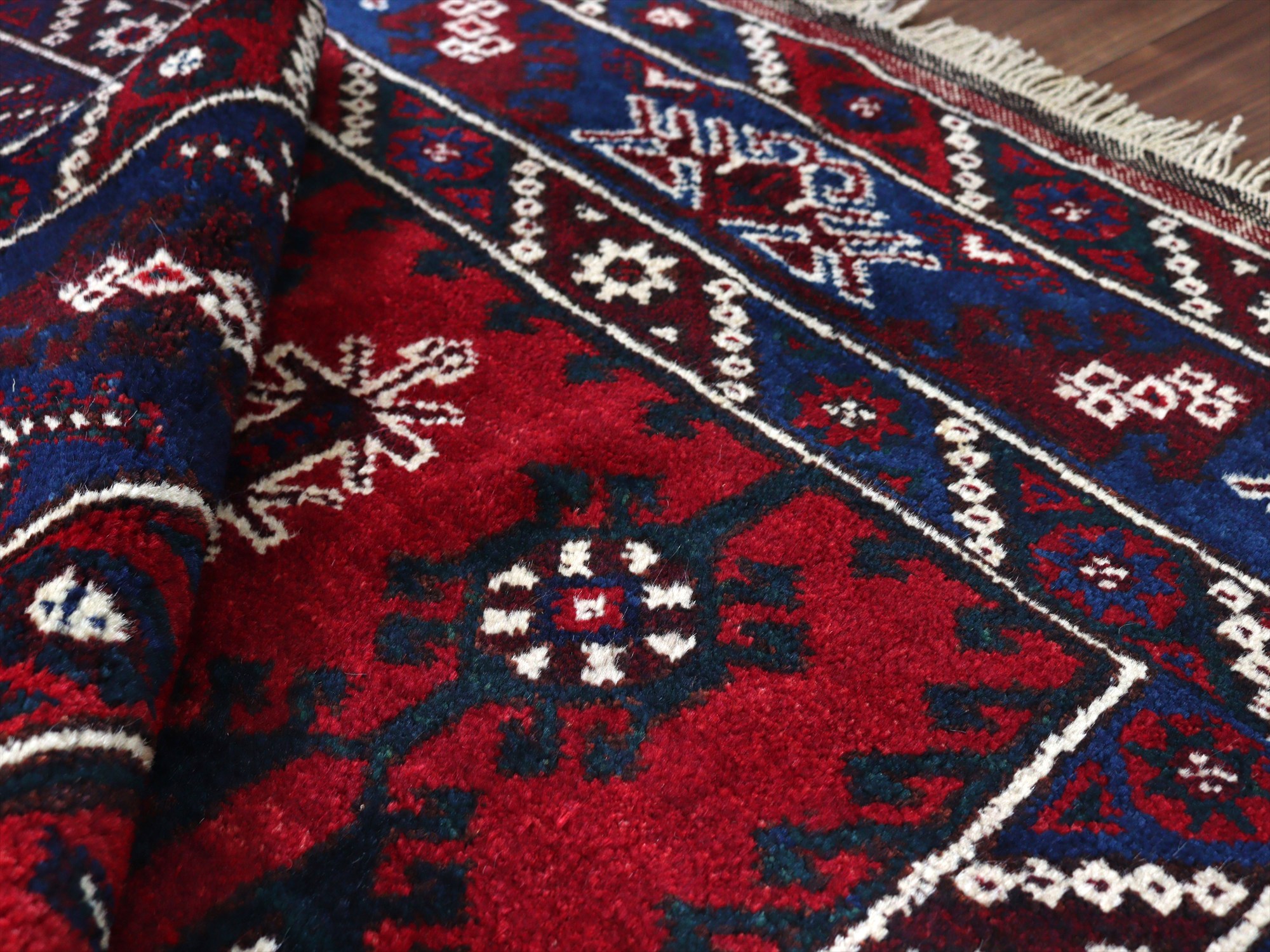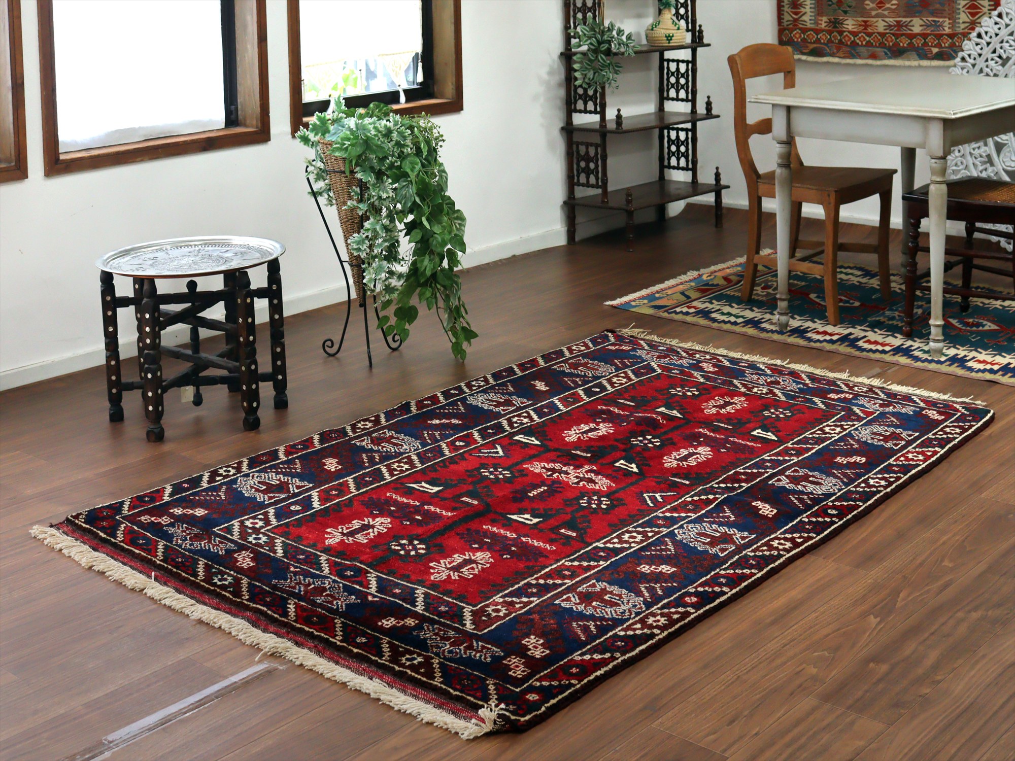 | 幾何学模様とシンプルな配色の伝統的なトルコ絨毯。産地のドゥシュメアルトゥは、南部の地中海地方、アンタルヤに近いエリアで、アナトリアの先住民族が住み着いた村と言われ、彼らの織るじゅうたんは最も古いタイプのオリジナルのトルコデザインといえます。このピースはおよそ25-30年前に織られたものですが、数百年前からほとんど変わらないデザインが受け継がれています。 |