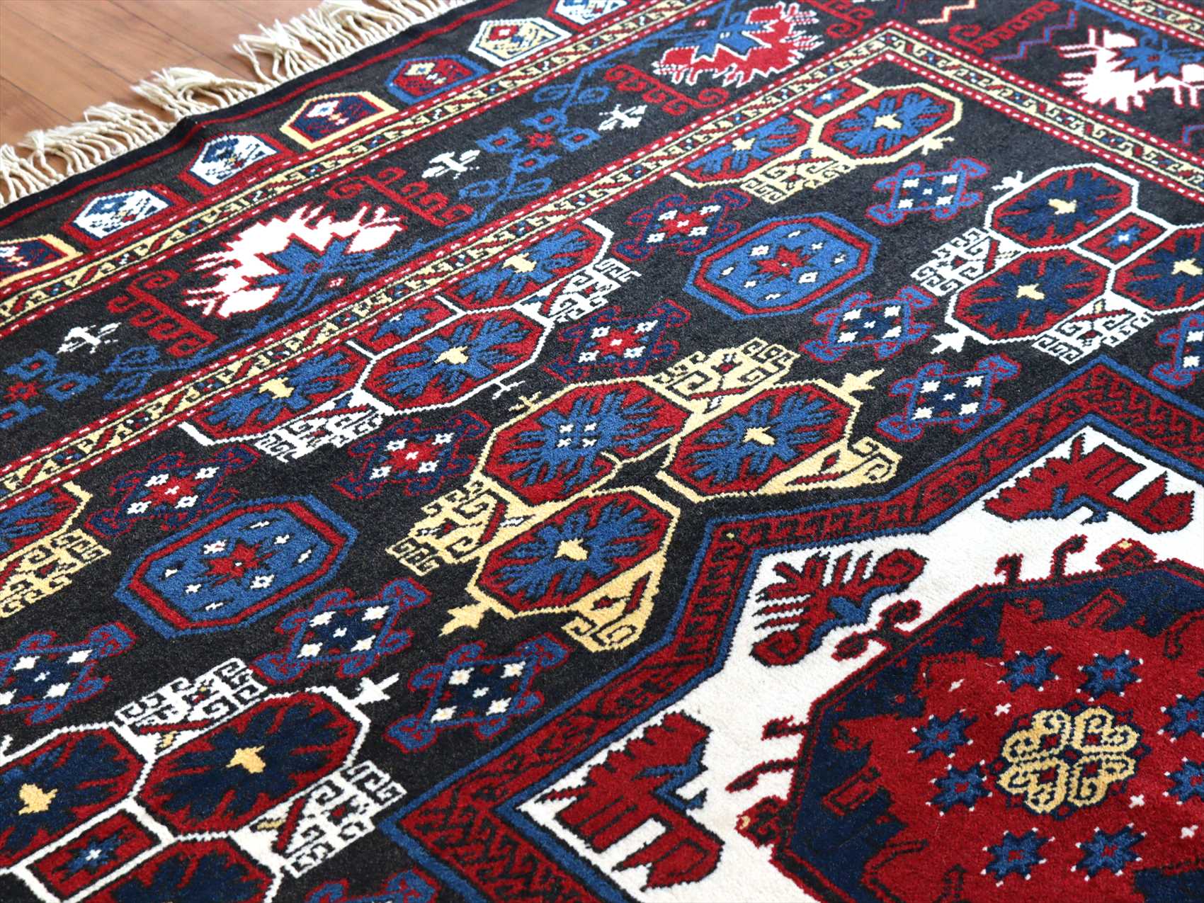 | 新しく織られた絨毯です。織り目は細かくパイルは短め、織り地は柔らかくソフトな肌触りです。 |
