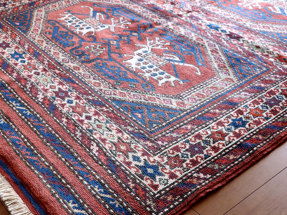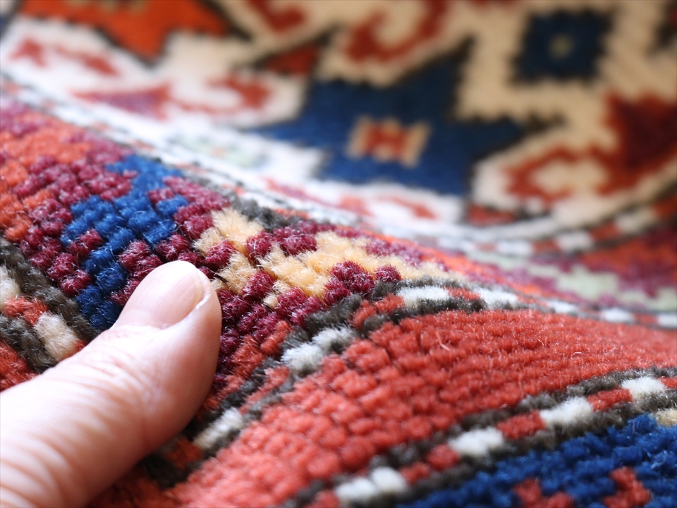 | 新しく織られた絨毯です。織り目は細かくパイルは短め、織り地は柔らかくソフトな肌触りです。 |