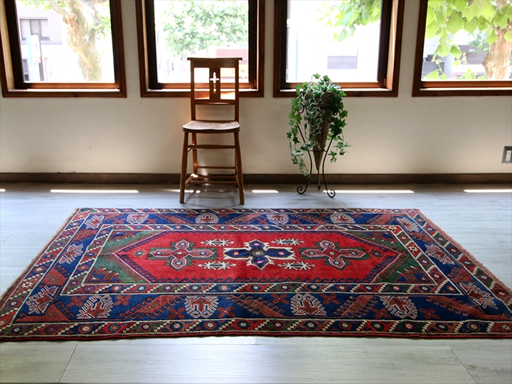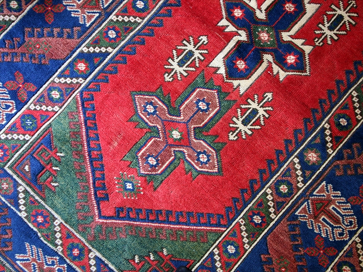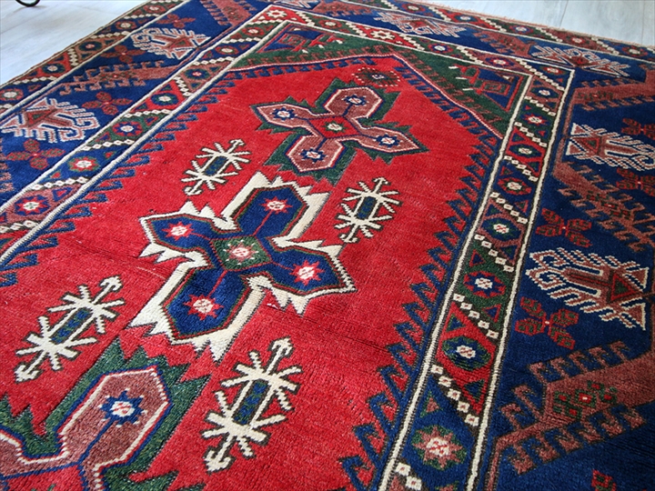 オールドカーペット・トルコ絨毯エリアラグ/セッヂャーデ /ドゥシュメアルトゥ/6角形の赤いメダリオン