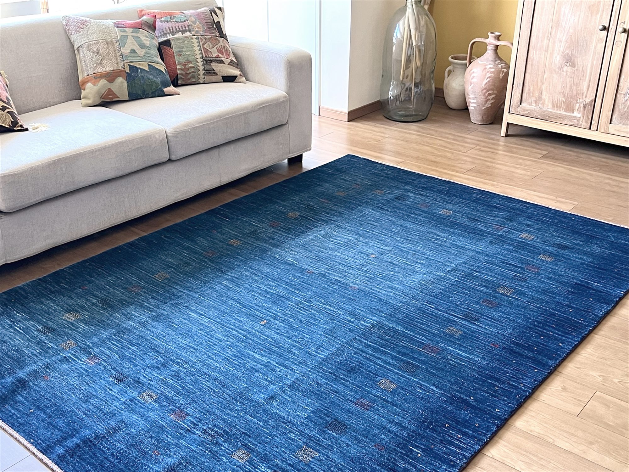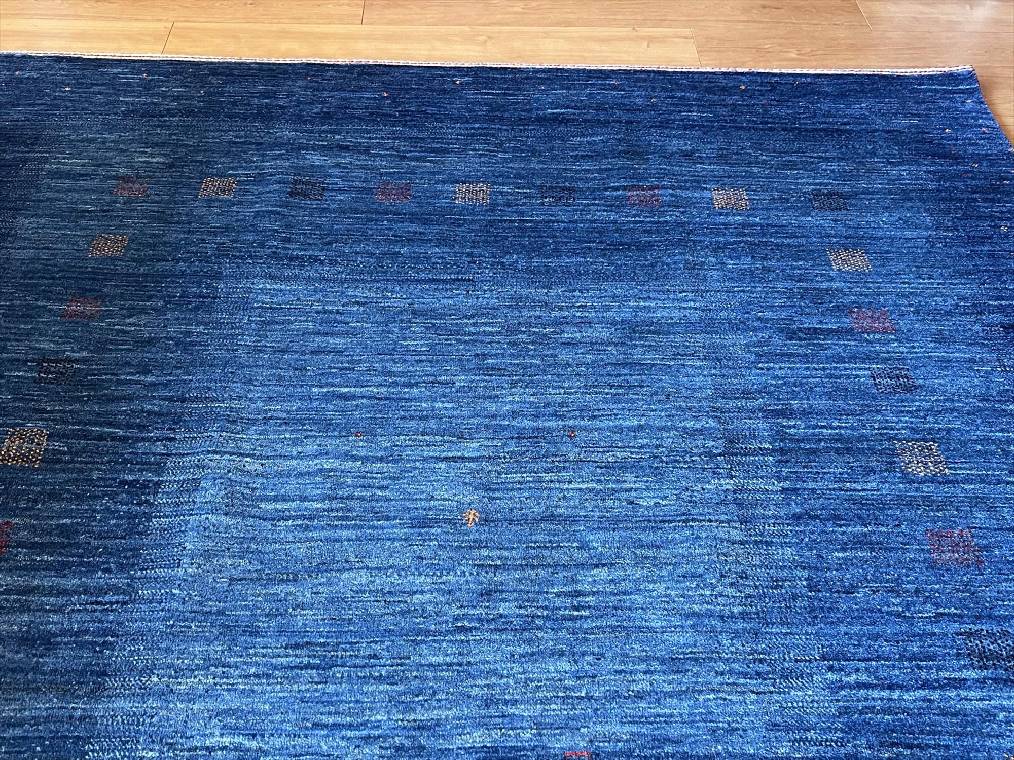 ギャッベ/カシュカイ族手織りラグ ロリアタシュ イラン直輸入/Gabbeh LoriAtash最上級に細かな織り/リビングサイズ ブルーグラデーション・スクエアデザイン