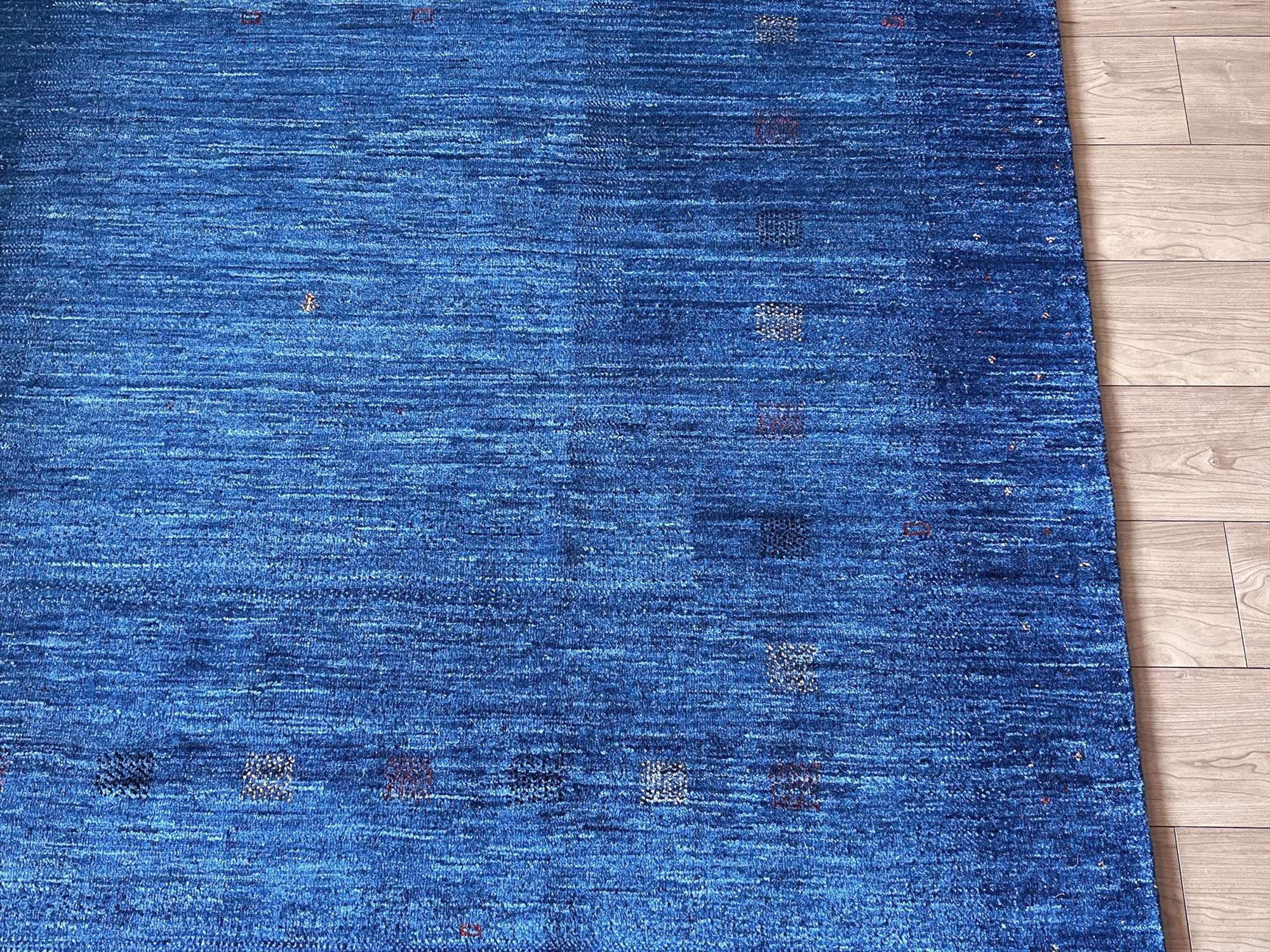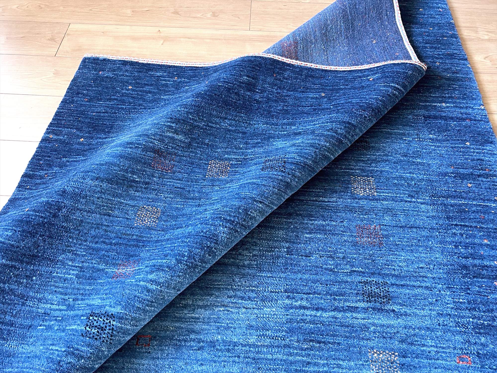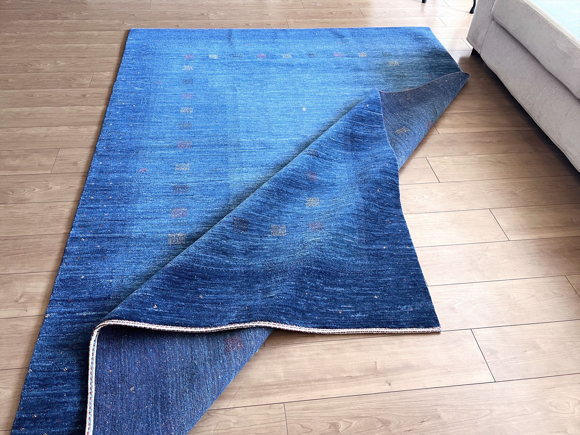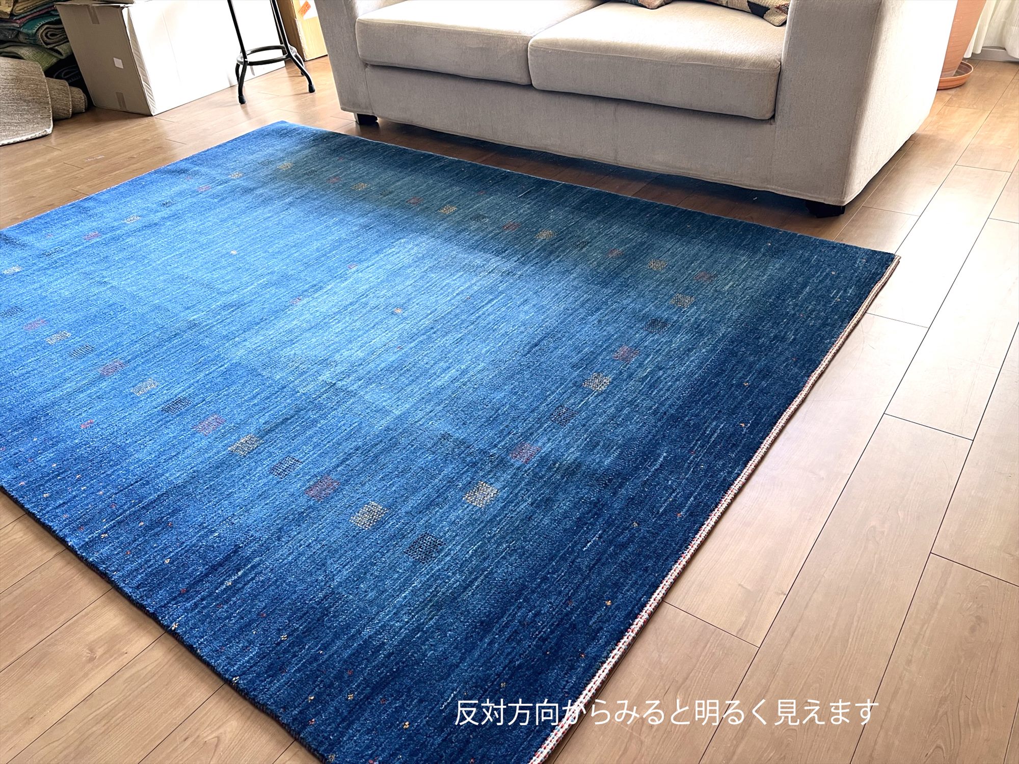 - ギャッベ/カシュカイ族手織りラグ ロリアタシュ イラン直輸入/Gabbeh LoriAtash最上級に細かな織り/リビングサイズ ブルーグラデーション・スクエアデザイン
