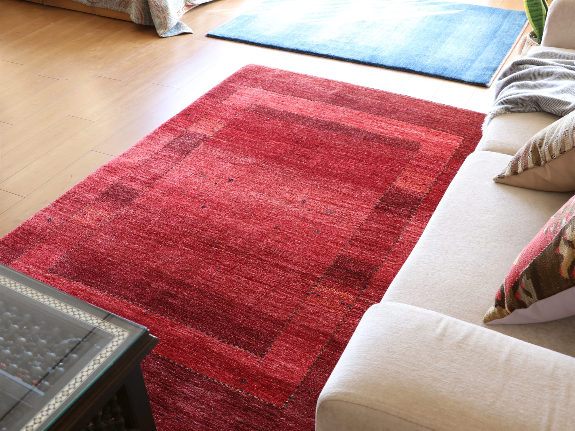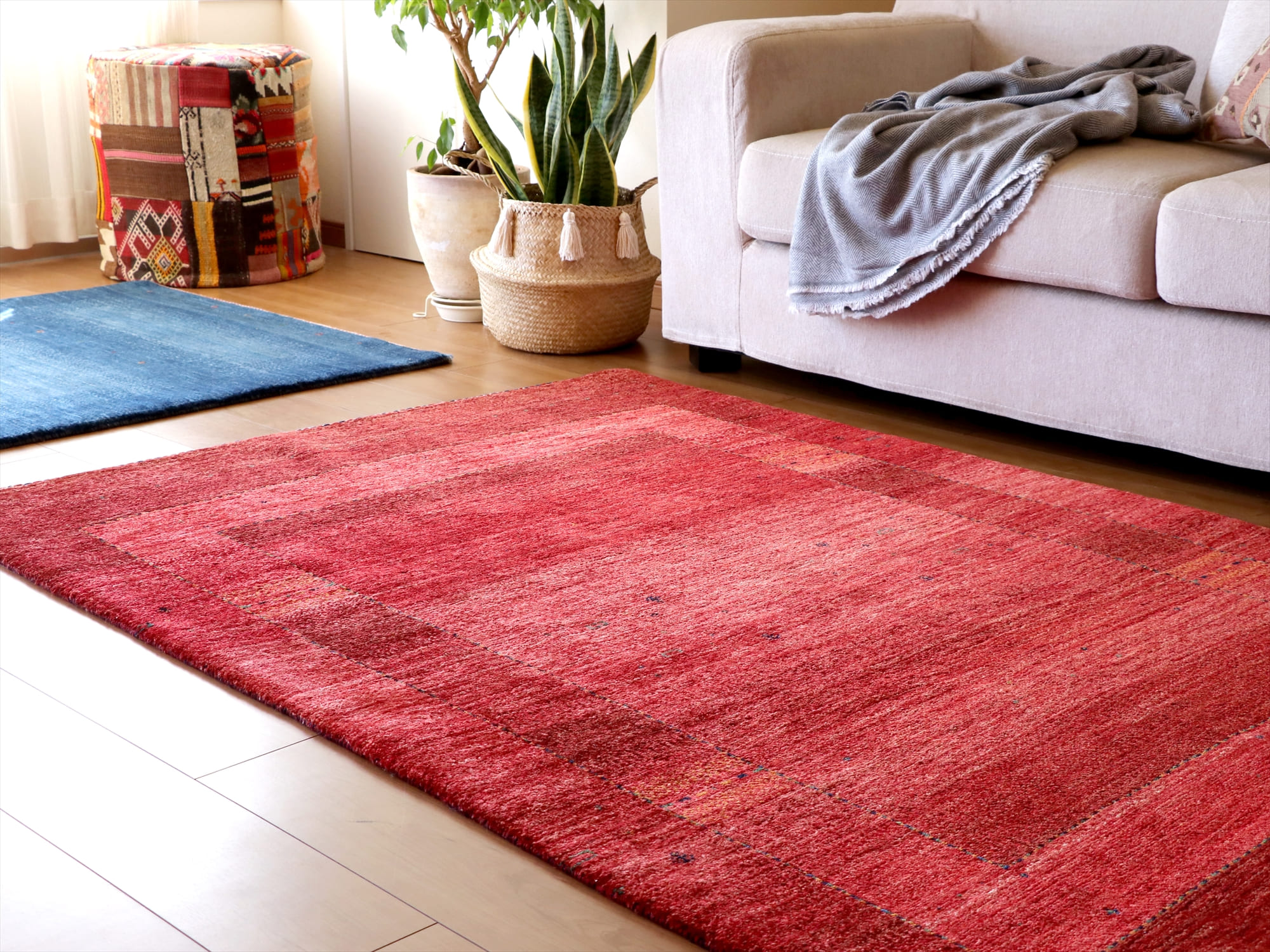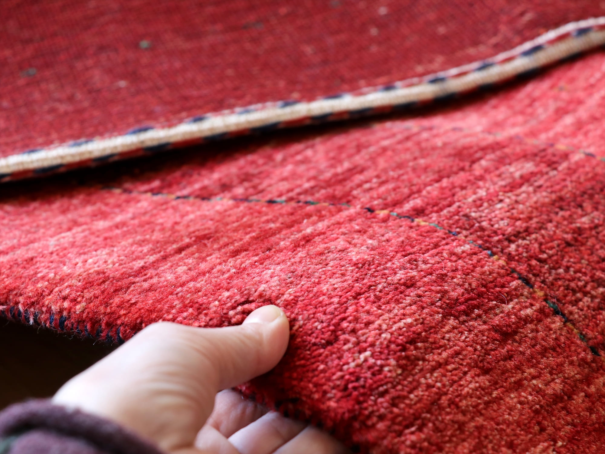- ギャベ ロリアタシュ180×120cm レッド 細かな織りの最高級ギャッベ