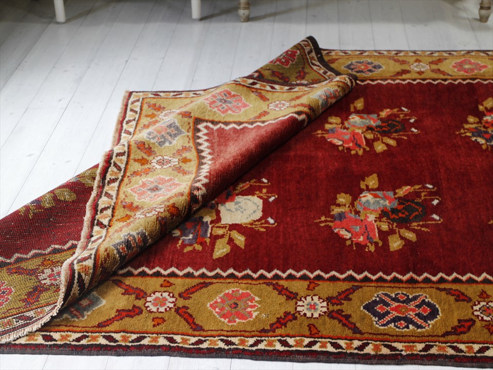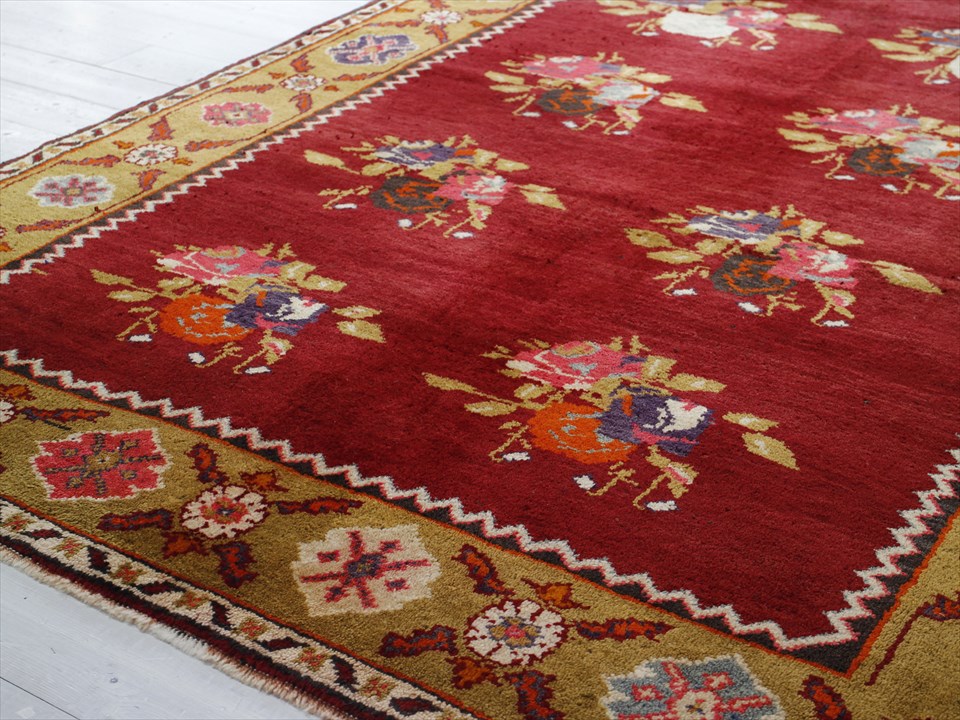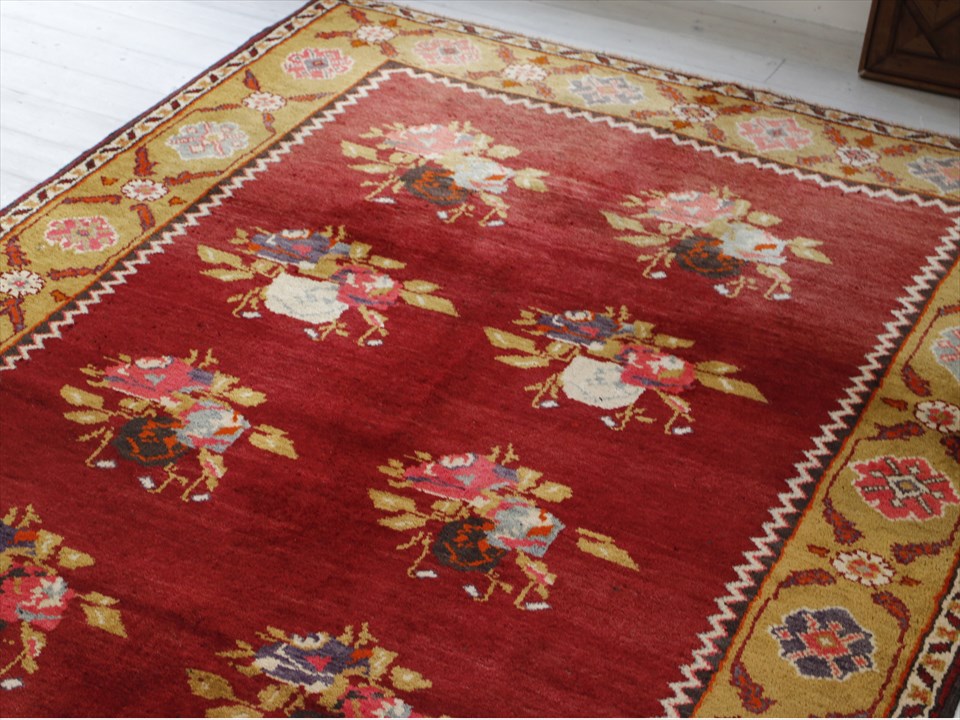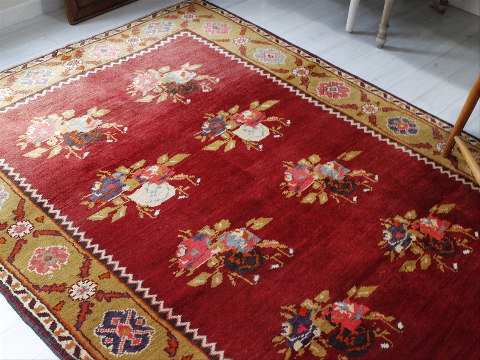 オールドカーペット・チャナッカレ トルコ絨毯/カリヨラ 花束のモチーフ