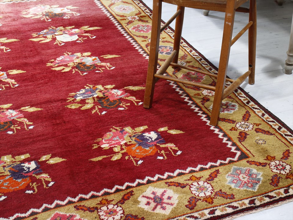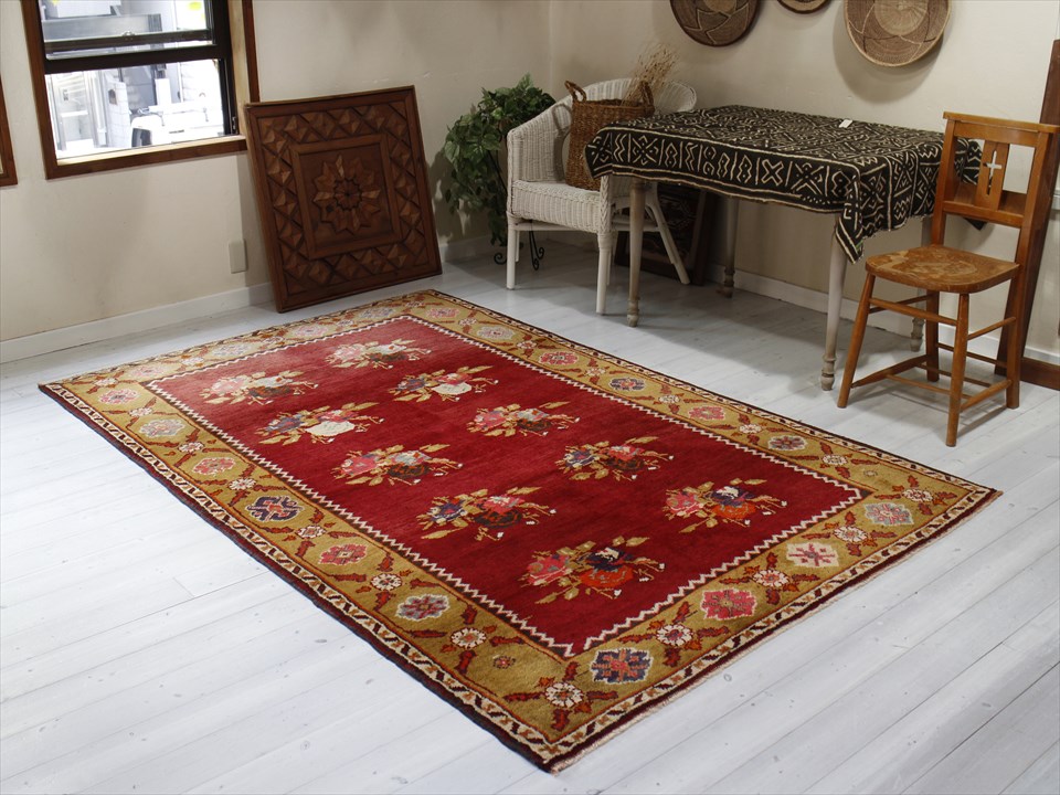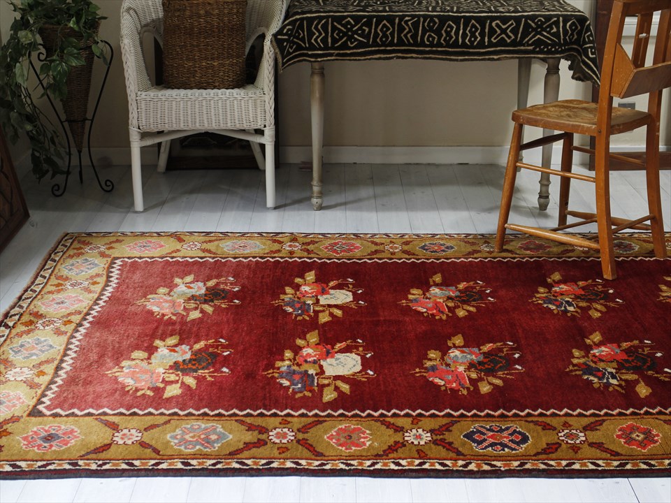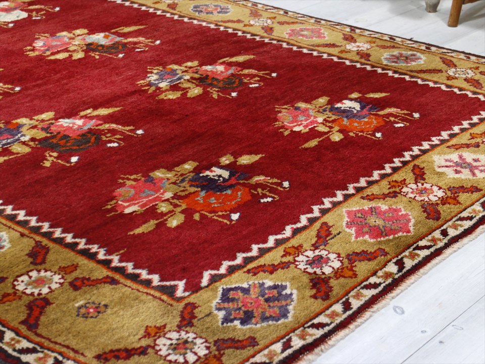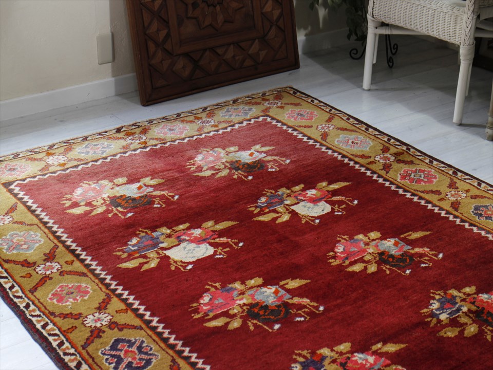 オールドカーペット・チャナッカレ トルコ絨毯/カリヨラ 花束のモチーフ
