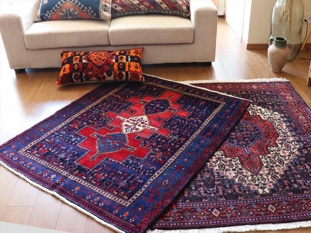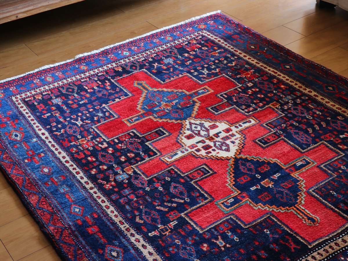 | イラン西部、トルコとの国境に近いエリアのオールドラグ。直線で描かれた赤いクロスのようなモチーフがかわいらしい印象です。 |