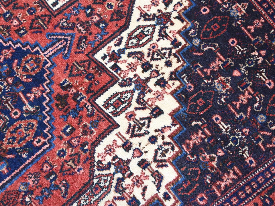 | ギュっと目のつまった細かな織り目の絨毯です。厚さは薄めでやわらかい織となっています。パイルは短かく、目立ったダメージはなくコンディション良好です。 |