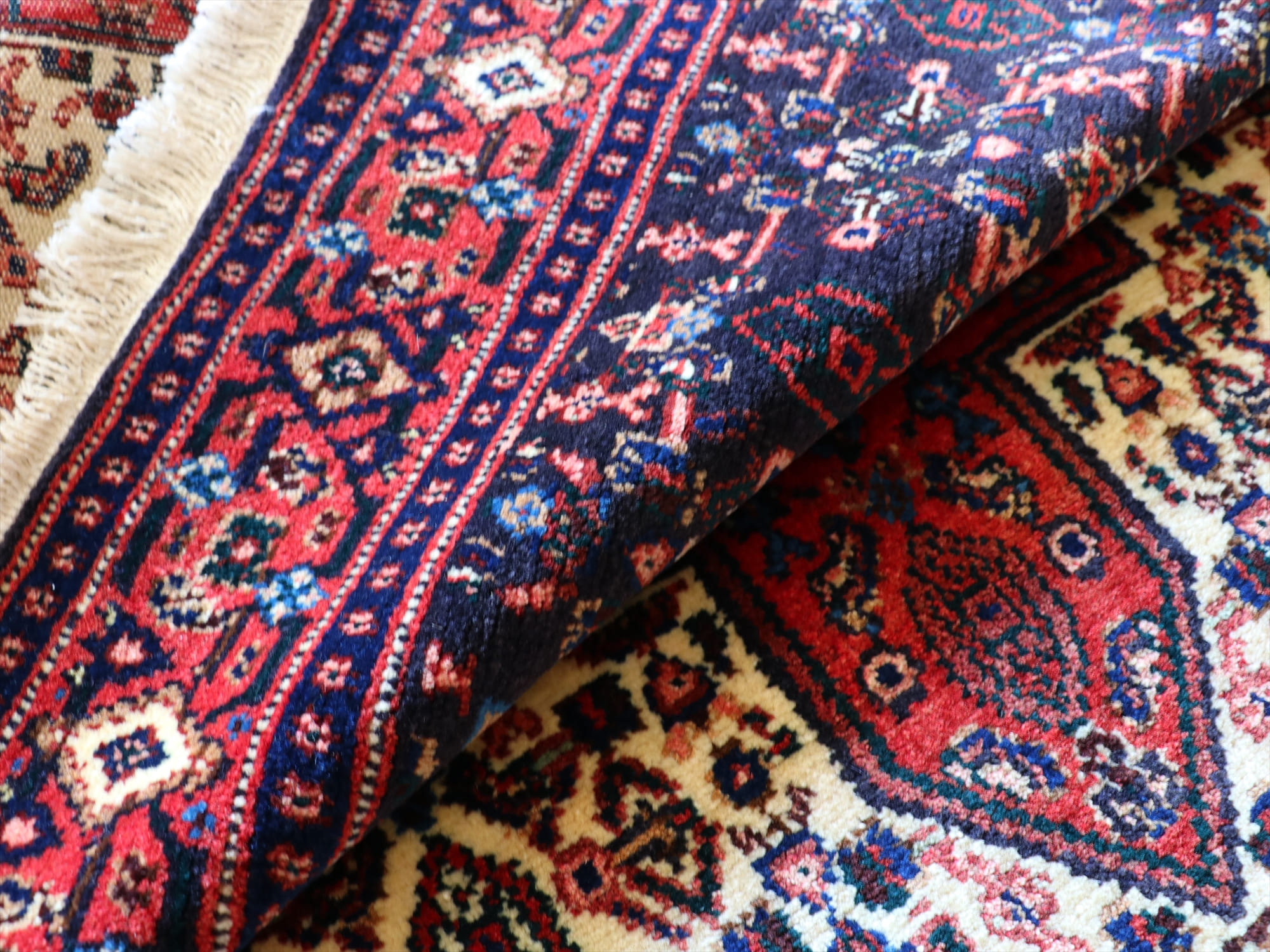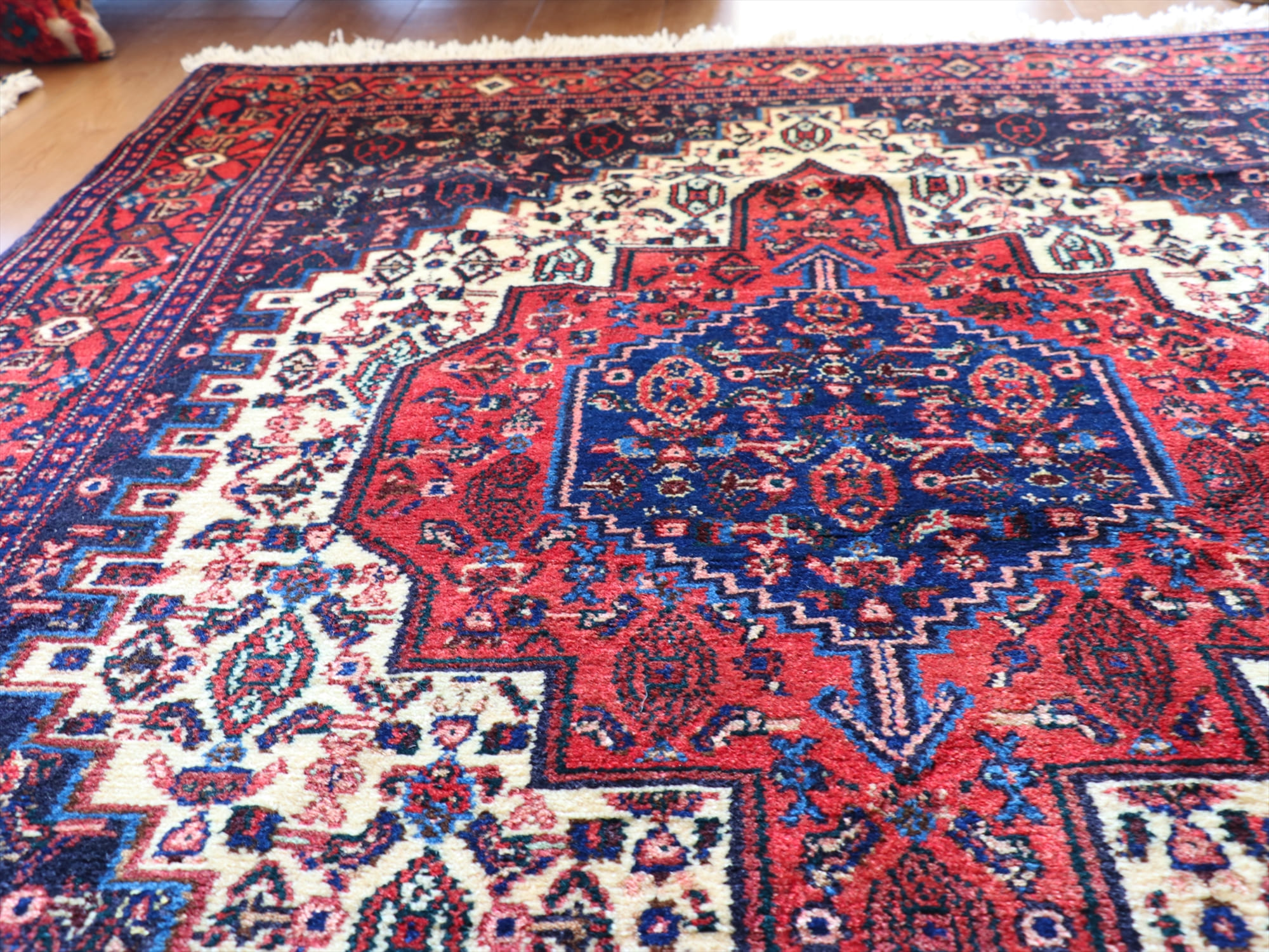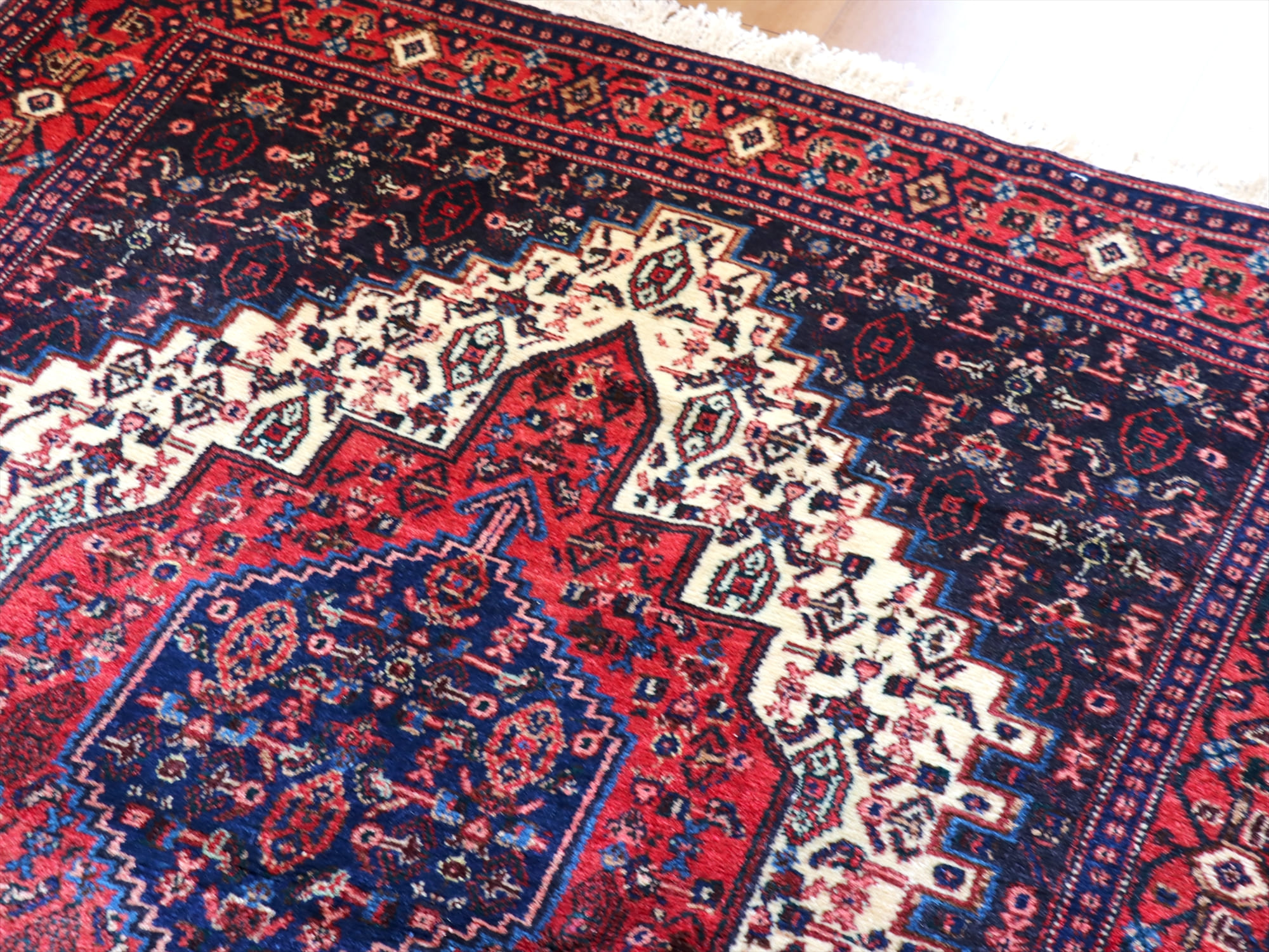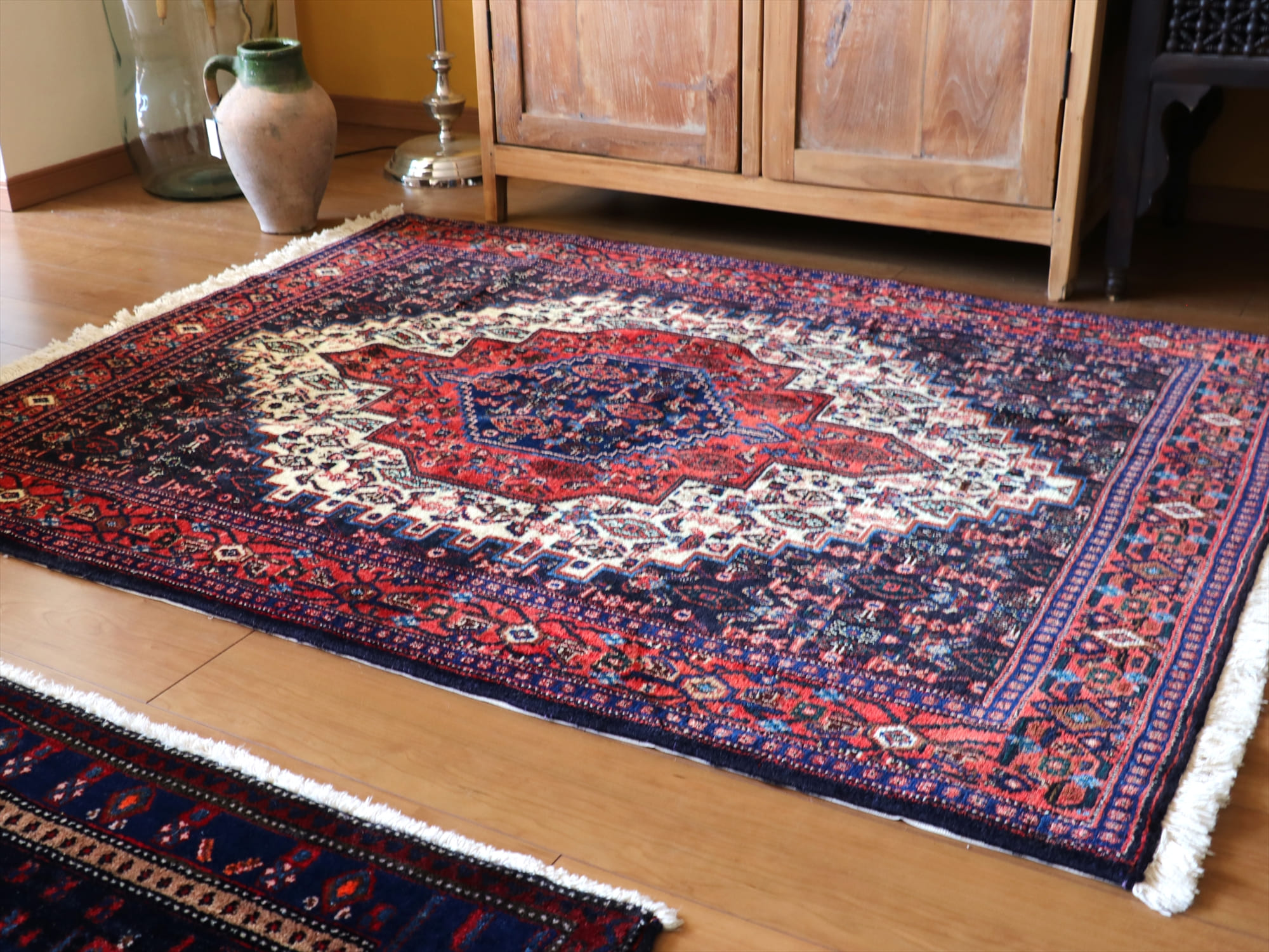 トライバルラグ・イランの絨毯/リビングサイズ・セッヂャーデ サナンダージ/六角形のメダリオン・アラベスク模様