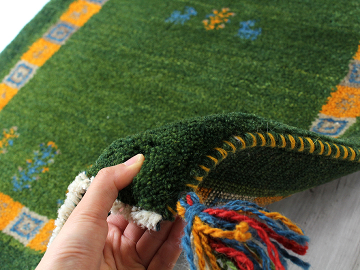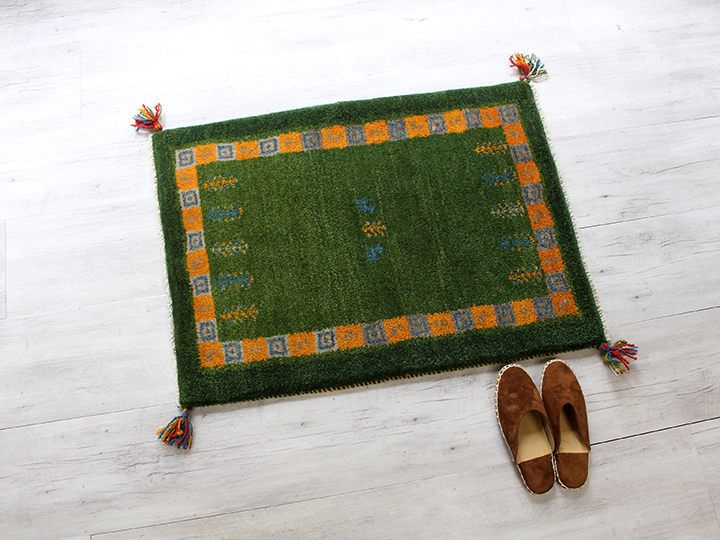 | ふかふかした毛足(パイル)で、手触りが気持ちいい手織りのギャッベ。草木染の色あいと素朴であたたかみのある手織りのじゅうたんで、暮らしを明るく彩ります。約90×60センチのサイズは玄関マットとして人気の高いグループ。他にもドアマットはもちろん、ベッドサイドや机の足元などに使いやすいサイズです。 |
