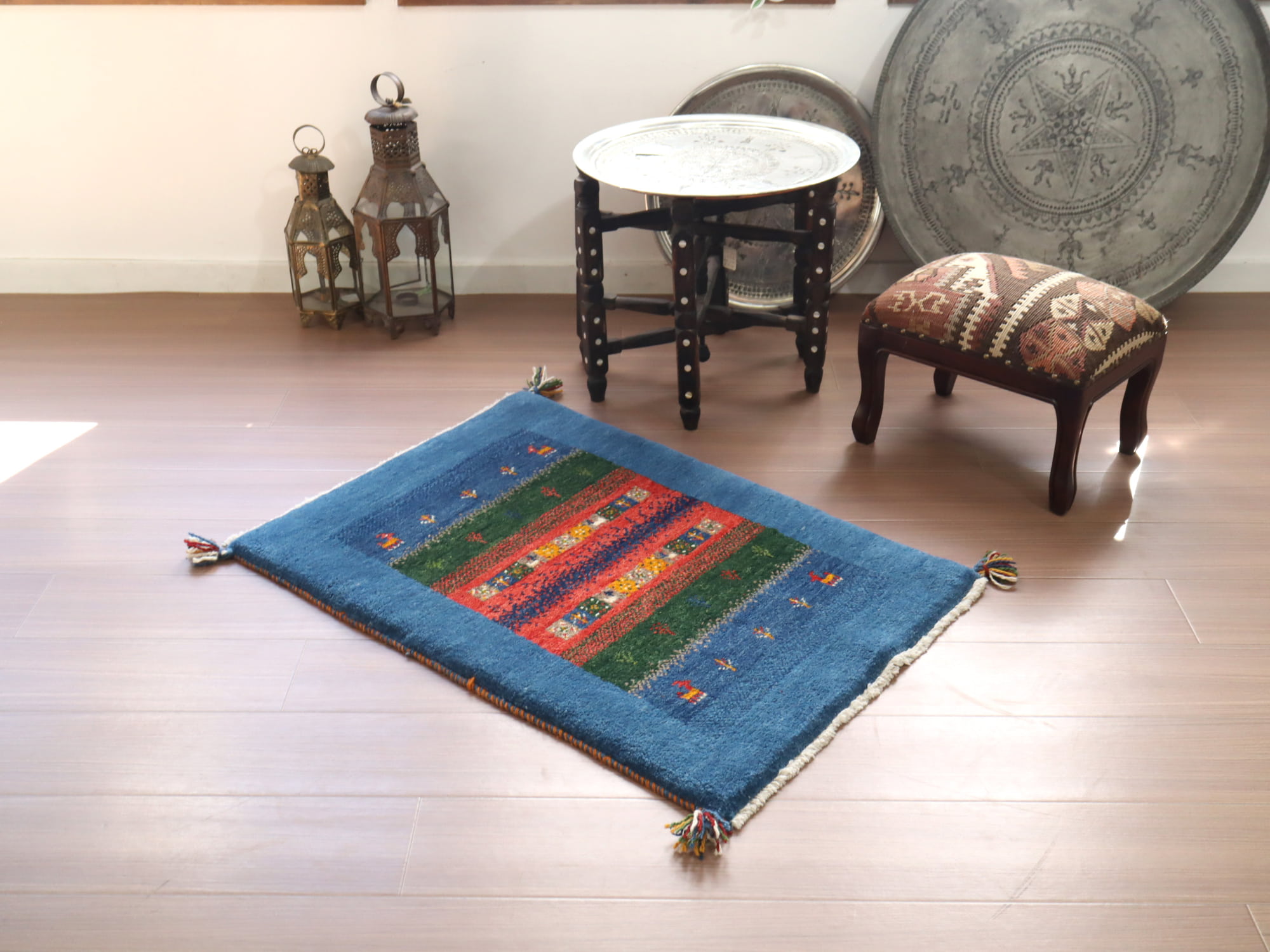 | ふかふかした毛足(パイル)で、手触りが気持ちいい手織りのギャッベ。草木染の色あいと素朴であたたかみのある手織りのじゅうたんで、暮らしを明るく彩ります。約90×60センチのサイズは玄関マットとして人気の高いグループ。他にもドアマットはもちろん、ベッドサイドや机の足元などに使いやすいサイズです。 |