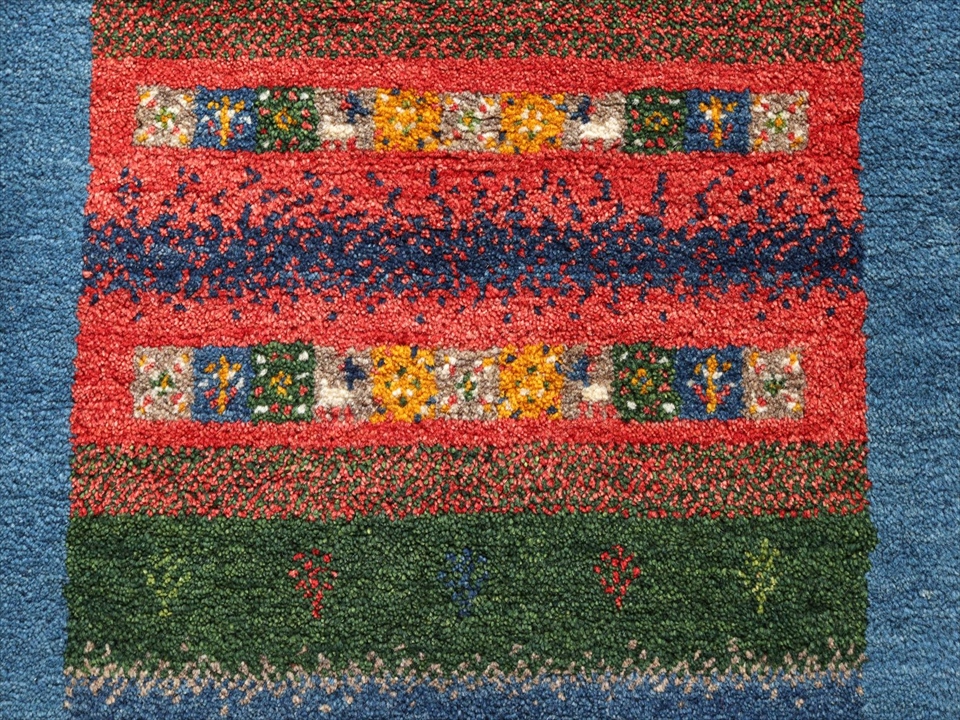 ギャッベの中で最もベーシックな織りのグレードです。シカやヒツジなどの動物、生命の樹などの定番モチーフが織り込まれていることが多く、いわゆる「ギャッベらしさ」が一番感じられるスタンダードなクラスです。元来、ギャッベとはこのクラスの織りの織物のことをいいます。厚みがあり、踏んでみるとふかふかしています。 |
