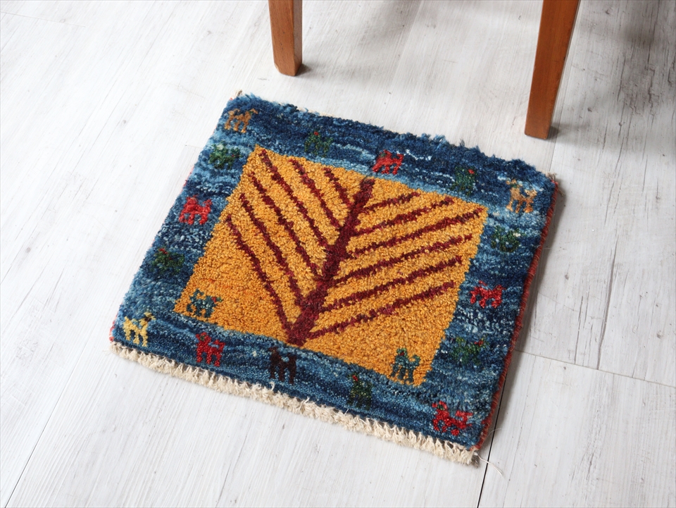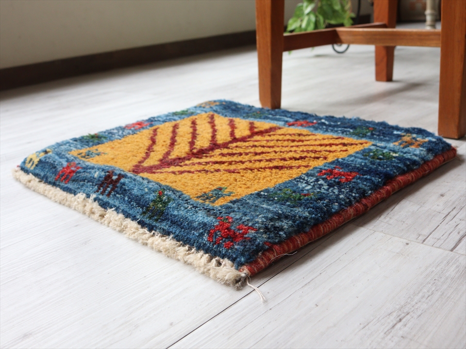 ギャッベ イラン遊牧民カシュカイ族手織りラグ チェアマット 座布団サイズ39×43cm