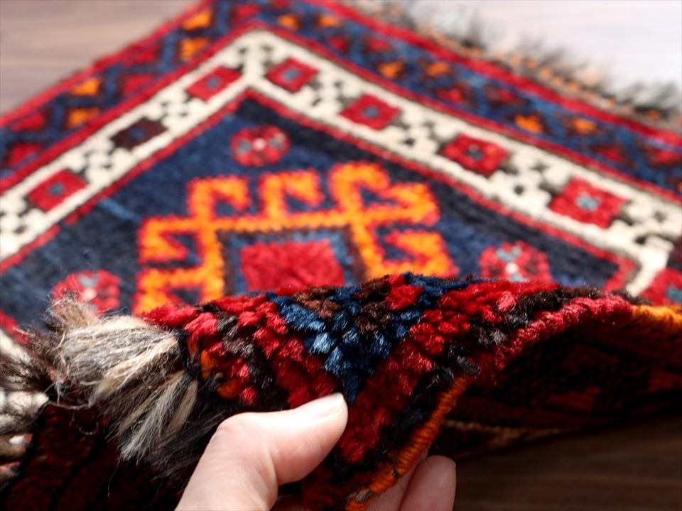 | 箱型の収納ケース・マフラシュ(トルコではベシックと呼ばれます)のサイド部分に使われていた小さなじゅうたんです。小さいながら、このサイズでオリジナルで織られたということもあり、コレクションピースになっています。 お座布団として使ったり、壁に飾ったり、または裏布をつけてバックやミニクッションにして使っても楽しめる一枚です。 |